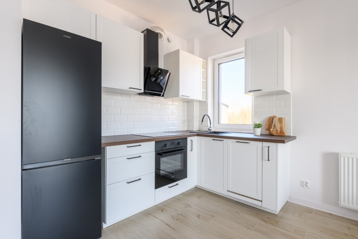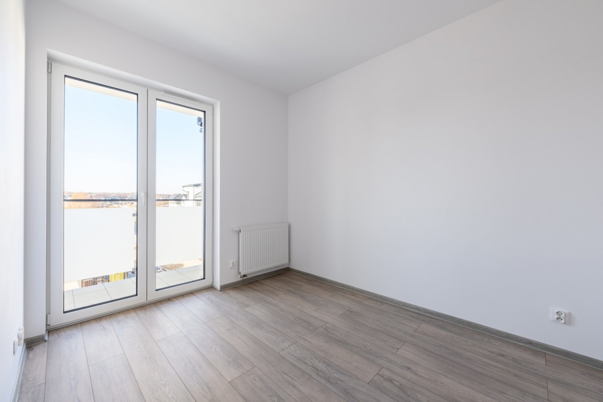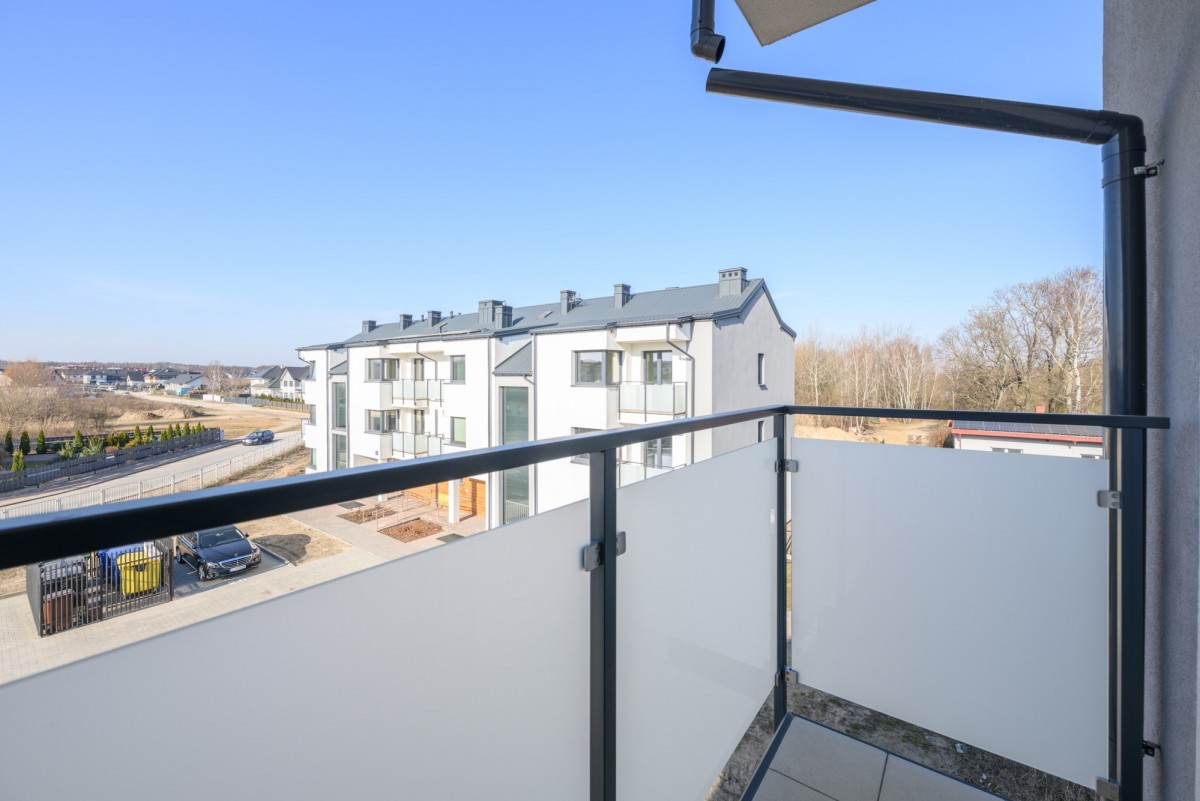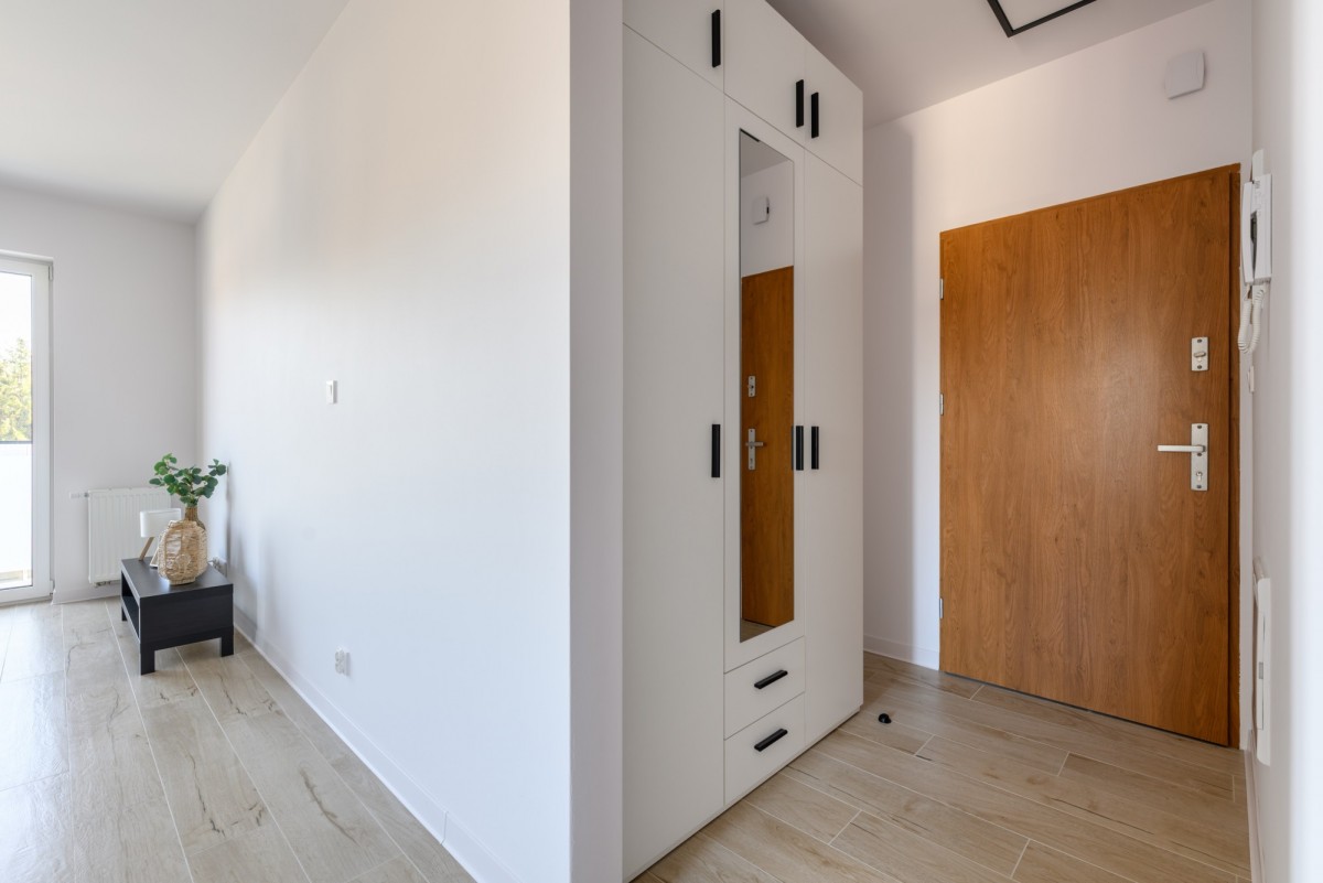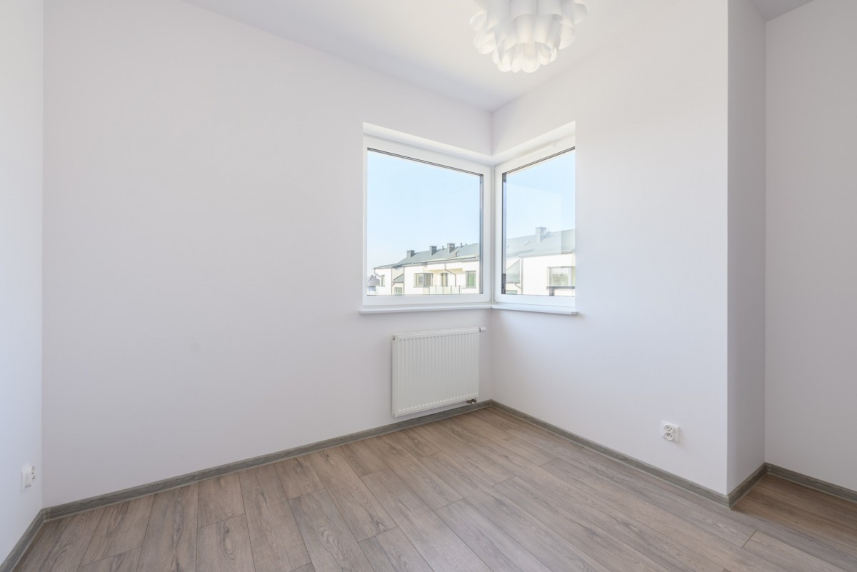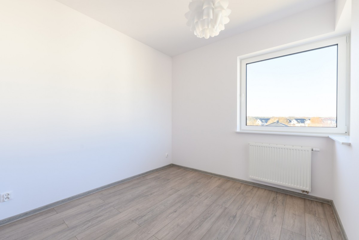 Sypialnie mają ekspozycję zachodnią, natomiast salon z aneksem kuchennym wychodzi na wschód. Dodatkowo w aneksie kuchennym znajduje się okno od strony północnej. Do mieszkania przynależą dwa balkony, które zapewniają dodatkową przestrzeń do wypoczynku. Lokal został wykończony w neutralnym, estetycznym standardzie. Mieszkanie nigdy nie było zamieszkałe. Całe wyposażenie AGD – lodówka, zmywarka oraz piekarnik – jest fabrycznie nowe, nigdy nie używane. W cenie nieruchomości zawarte jest również naziemne miejsce postojowe zlokalizowane bezpośrednio przy budynku.