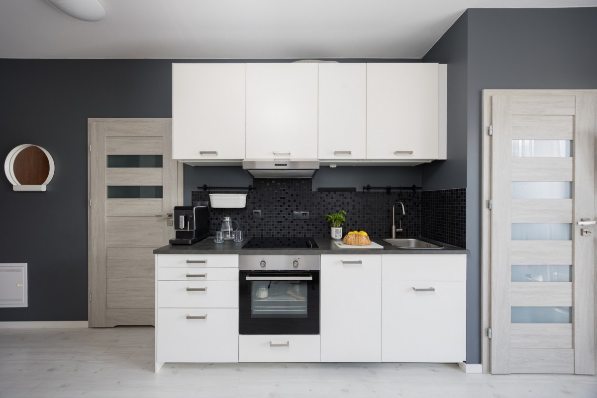 • salon połączony z aneksem kuchennym i przedpokojem – 21,25 m²