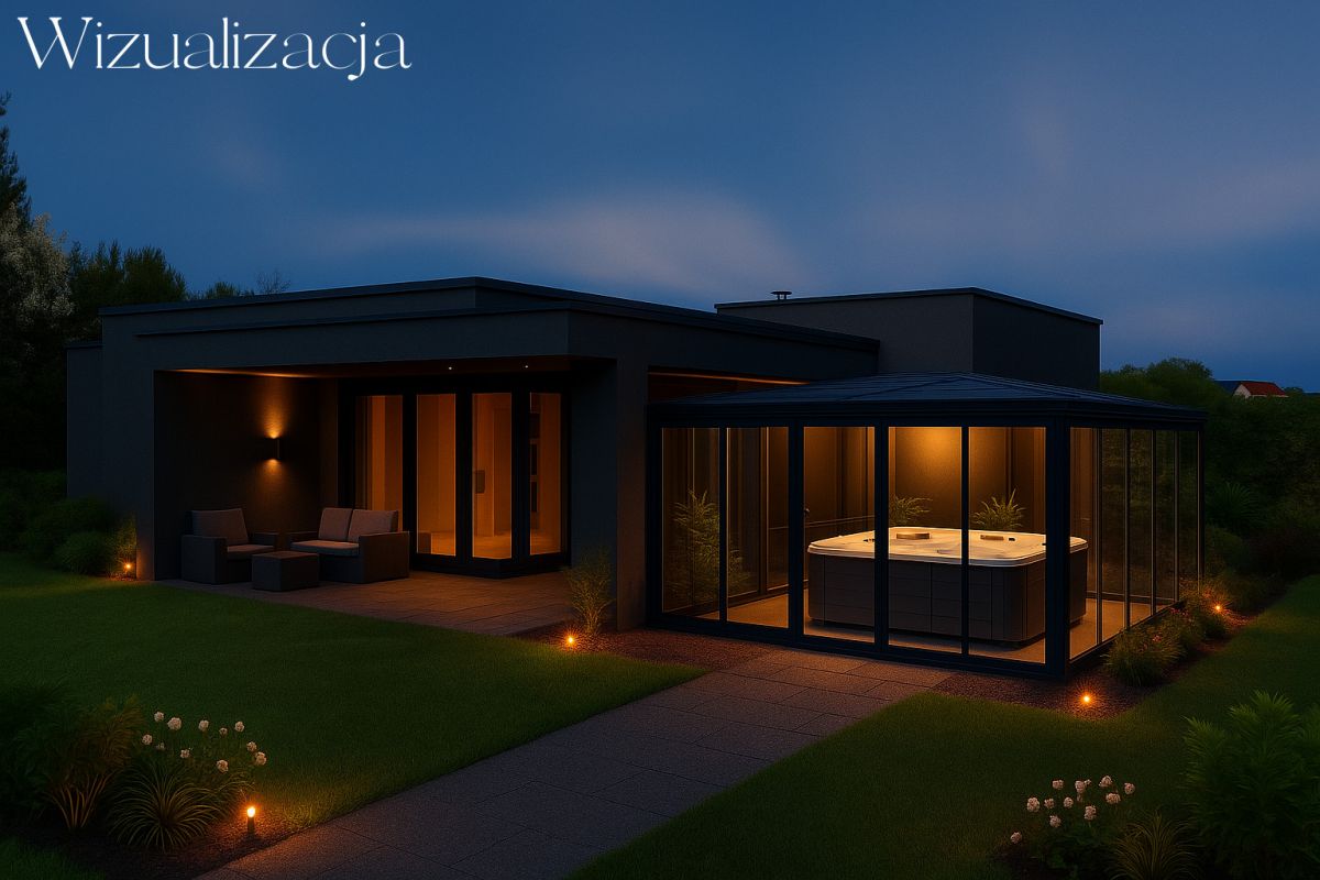 – Panoramiczne okna 3-szybowe, ciepły montaż, niskie progi, drzwi HS