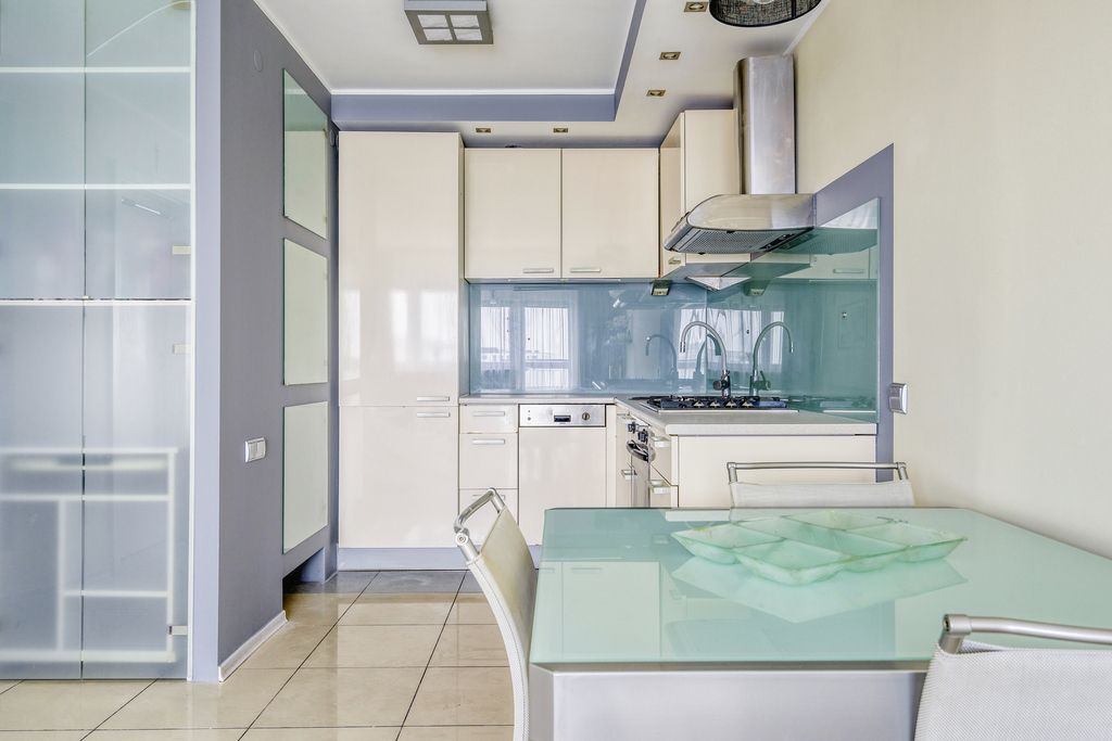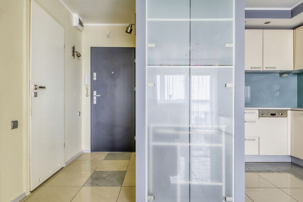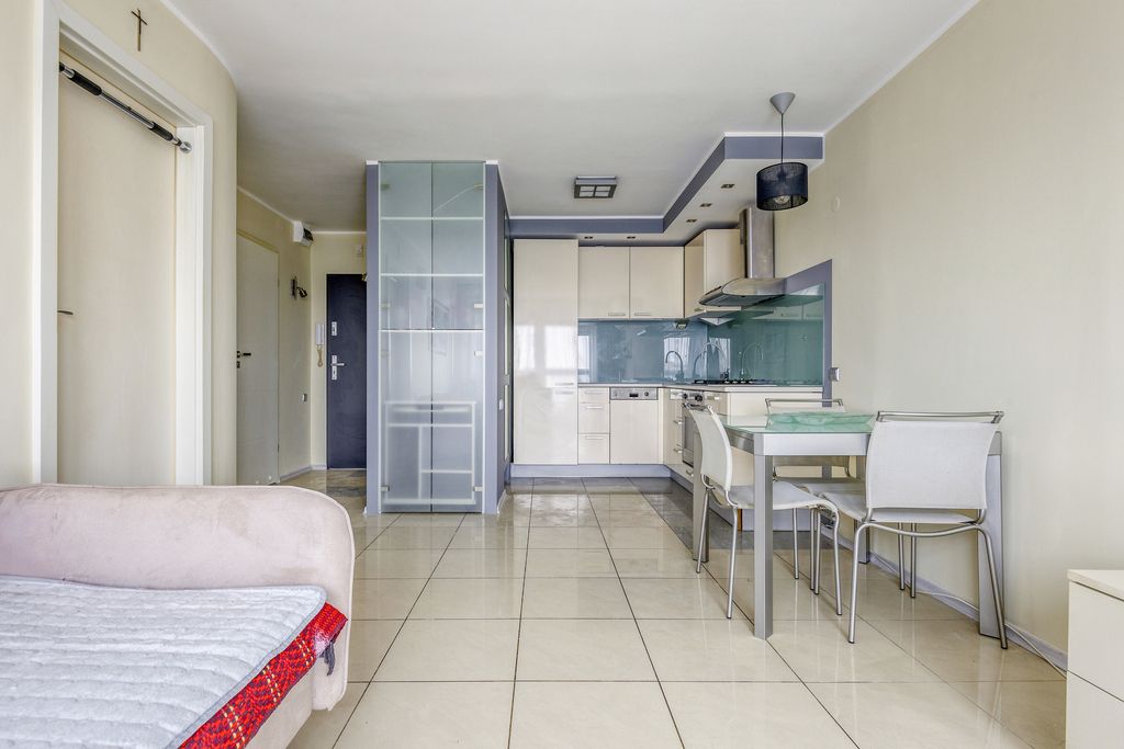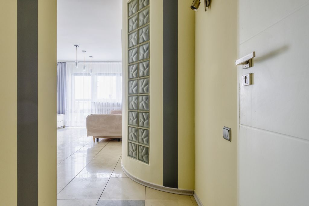 Apartament mieści się na 10 piętrze z pięknym widokiem na rozległą panoramę Warszawy.
