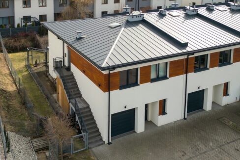 - Nowoczesna zabudowa bliźniacza na przestronnych działkach – ok. 300 m² ogrodu