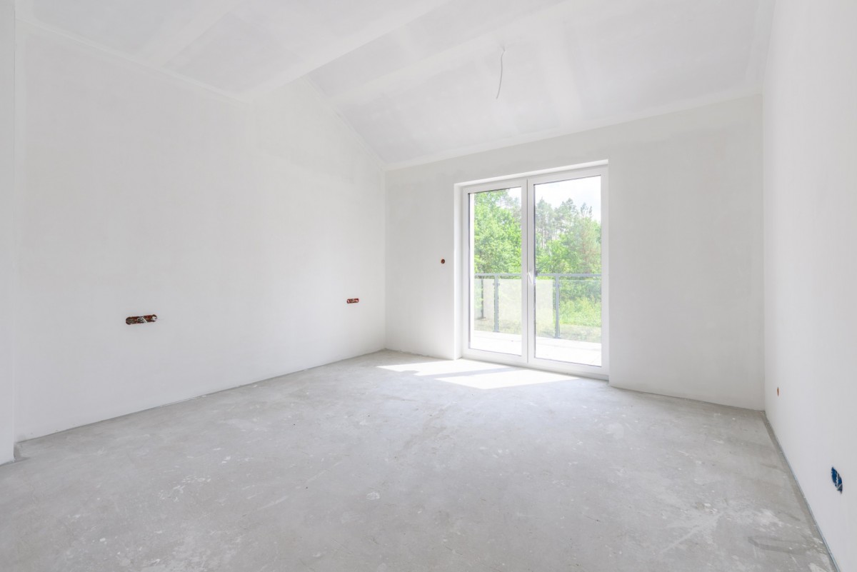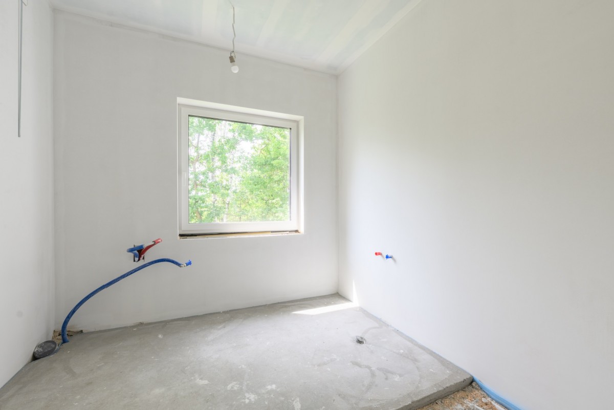 - Wnętrza: tynki gipsowe, ściany pomalowane białą farbą gruntującą Beckers