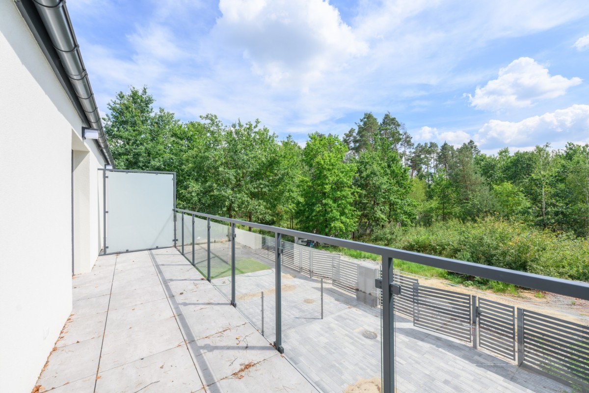 - Balkony (od południa) i tarasy (od północy) z przesuwnymi drzwiami tarasowymi z niskim progiem