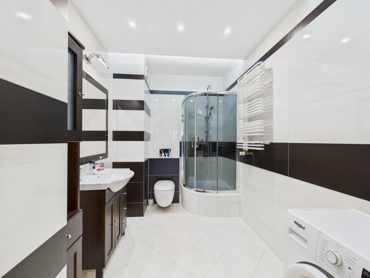 - łazienka z eleganckim wykończeniem