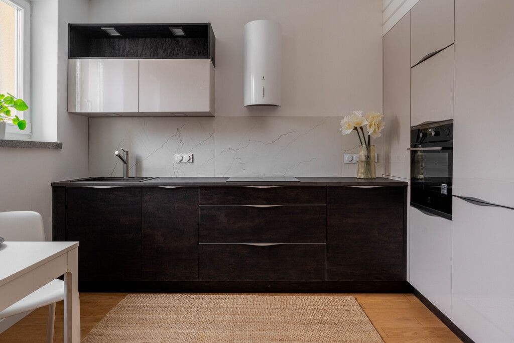 The functional layout makes the apartment ideal both for living and working. Thanks to its east–west exposure and two balconies, the interior is filled with natural light throughout the day.