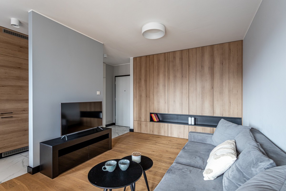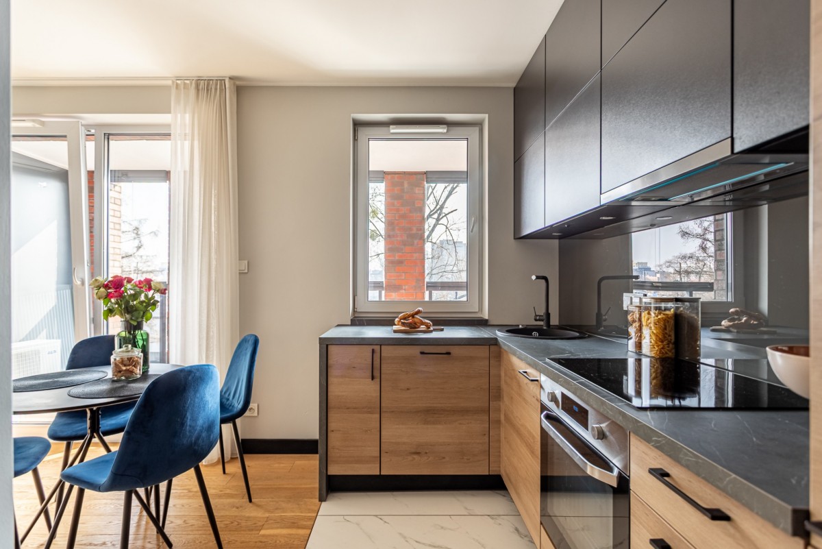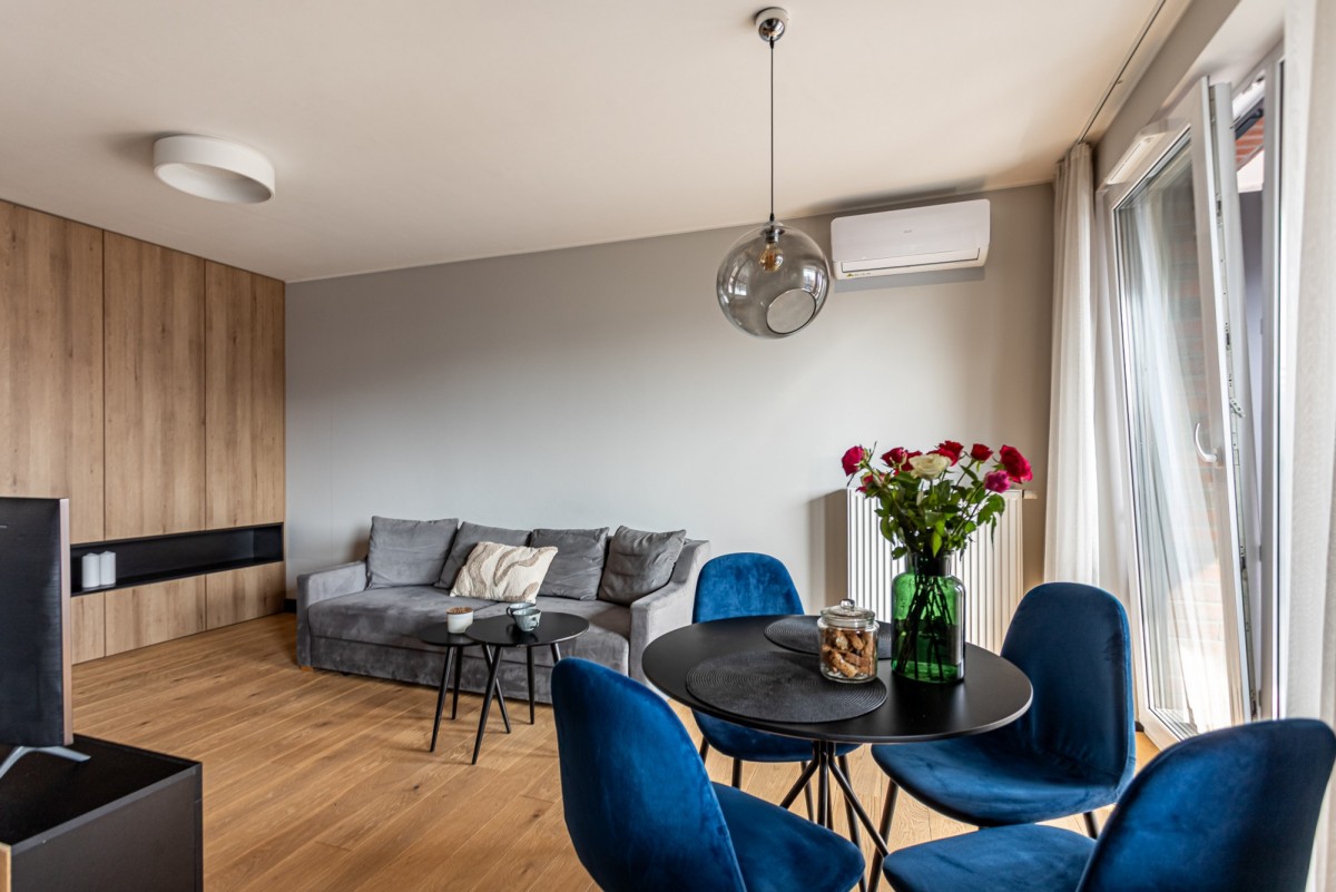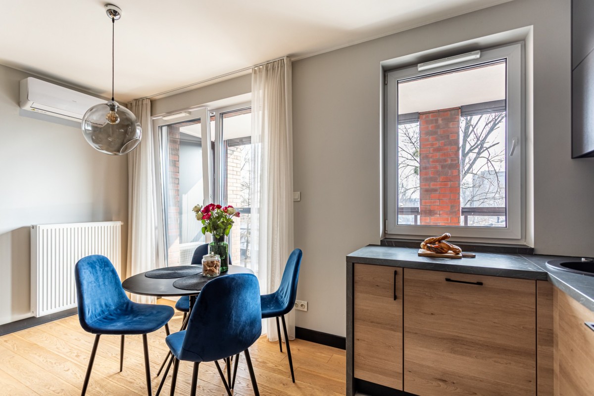 Nowoczesny, komfortowy dwupokojowy apartament na sprzedaż na drugim piętrze kameralnej inwestycji. Nieruchomość wyróżnia się panoramicznymi oknami, które zapewniają doskonałe doświetlenie wnętrz, oraz przestronnym balkonem o powierzchni 12.45 m², dostępnym zarówno z salonu, jak i sypialni. Jest w pełni wyposażony w meble oraz sprzęty RTV i AGD, co pozwala na natychmiastowe zamieszkanie bez dodatkowych nakładów.