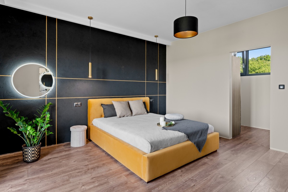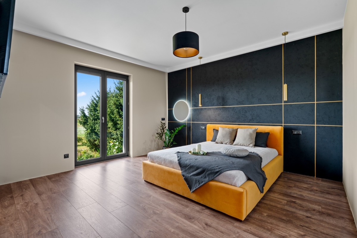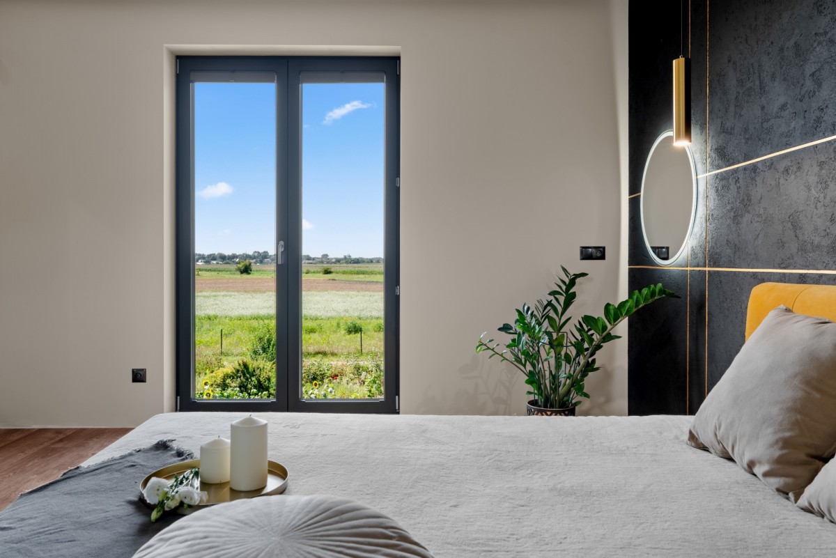 – przestronna sypialnia z widokiem na zieleń, połączona z własną łazienką i garderobą