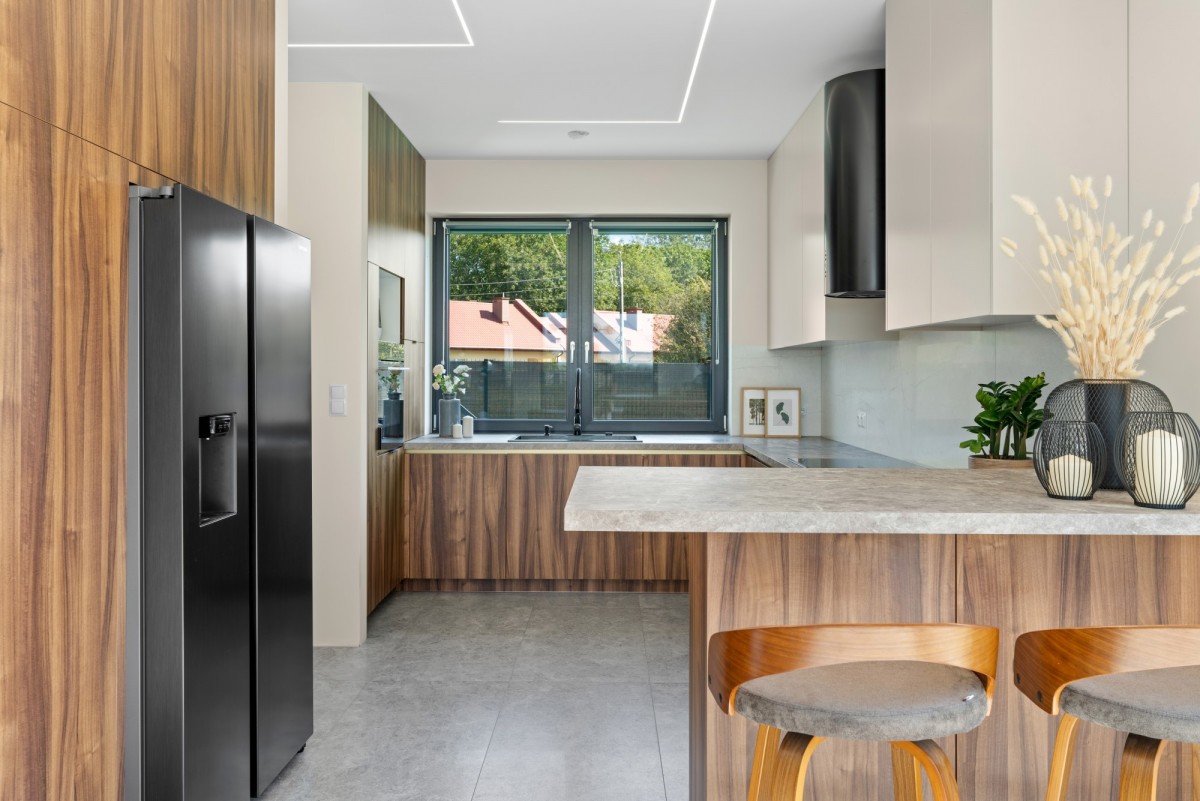 – przestronny salon połączony z kuchnią – serce domu, w którym można wspólnie gotować i spędzać czas
