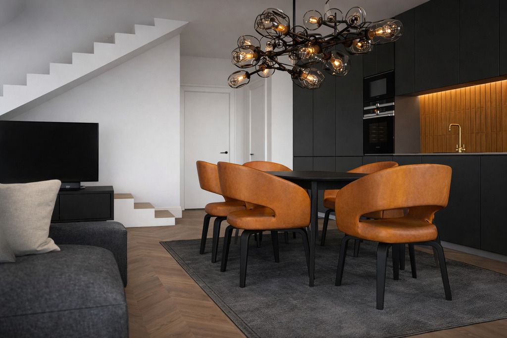 – przestronny salon połączony z otwartą kuchnią i panoramicznym wyjściem na taras,