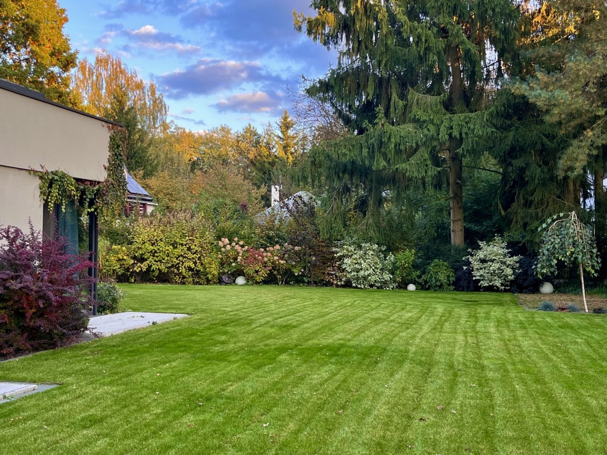 Przepiękny ogród z bujną roślinnością został zaprojektowany z myślą o komforcie i estetyce.