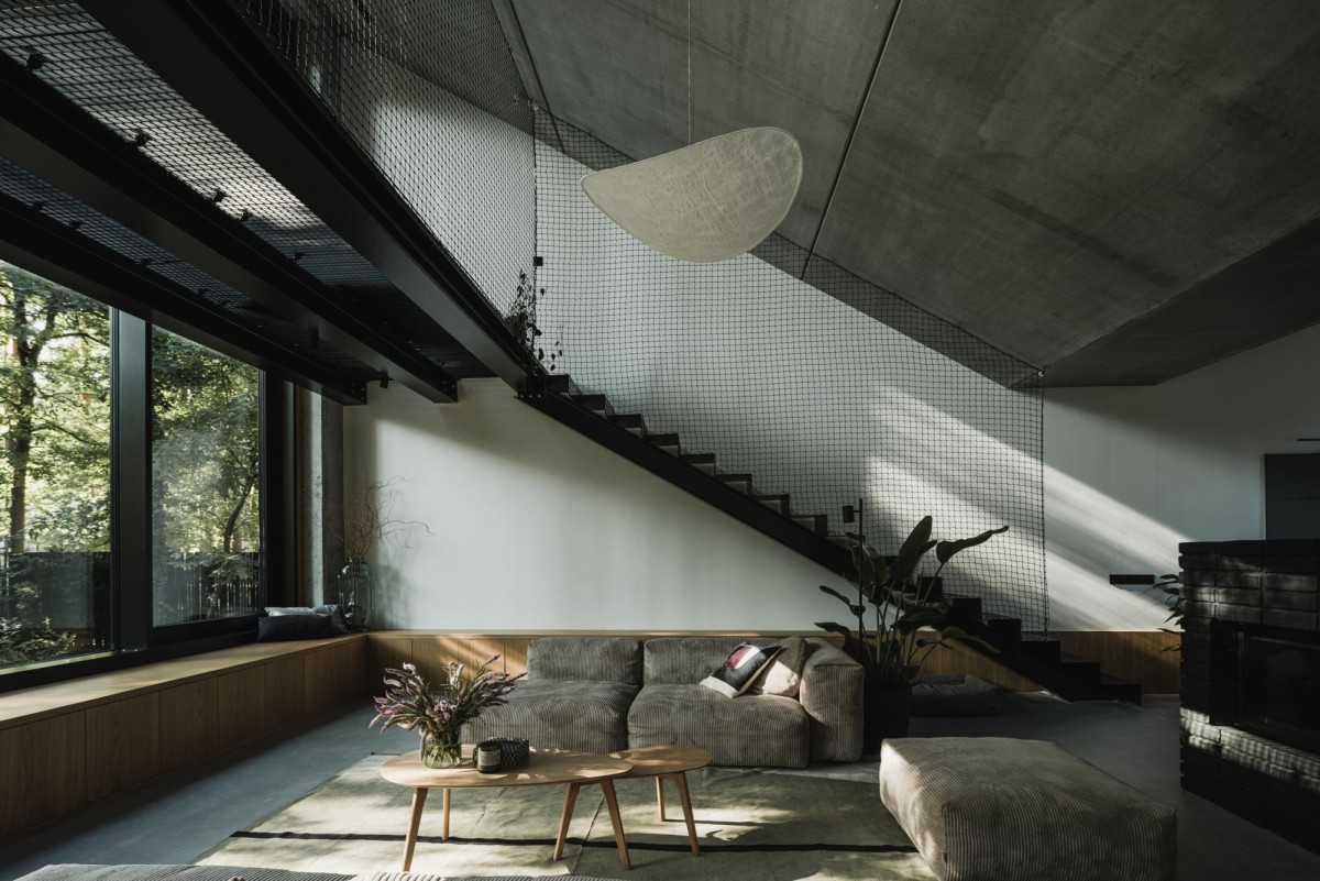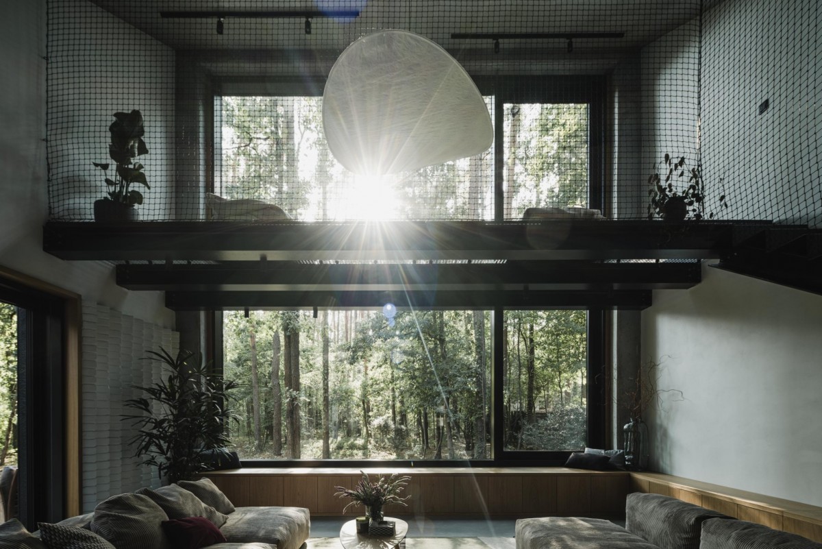 Dom znajduje się w zacisznej części Zalesia Górnego tuż przy lesie. Dzięki architekturze i usytuowaniu na działce pozwala na duża dozę prywatności i komfortu. Zalesie Górne to miejscowość położona na południe od Warszawy, znana z malowniczych terenów zielonych i licznych szlaków turystycznych, co czyni ją atrakcyjnym miejscem do zamieszkania i wypoczynku.