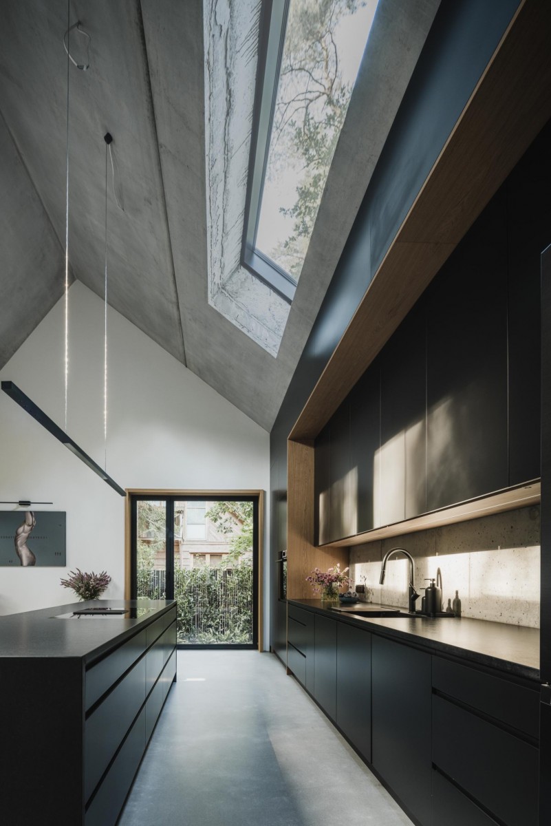 * strop: prefabrykowane płyty z betonu architektonicznego (odsłonięte),