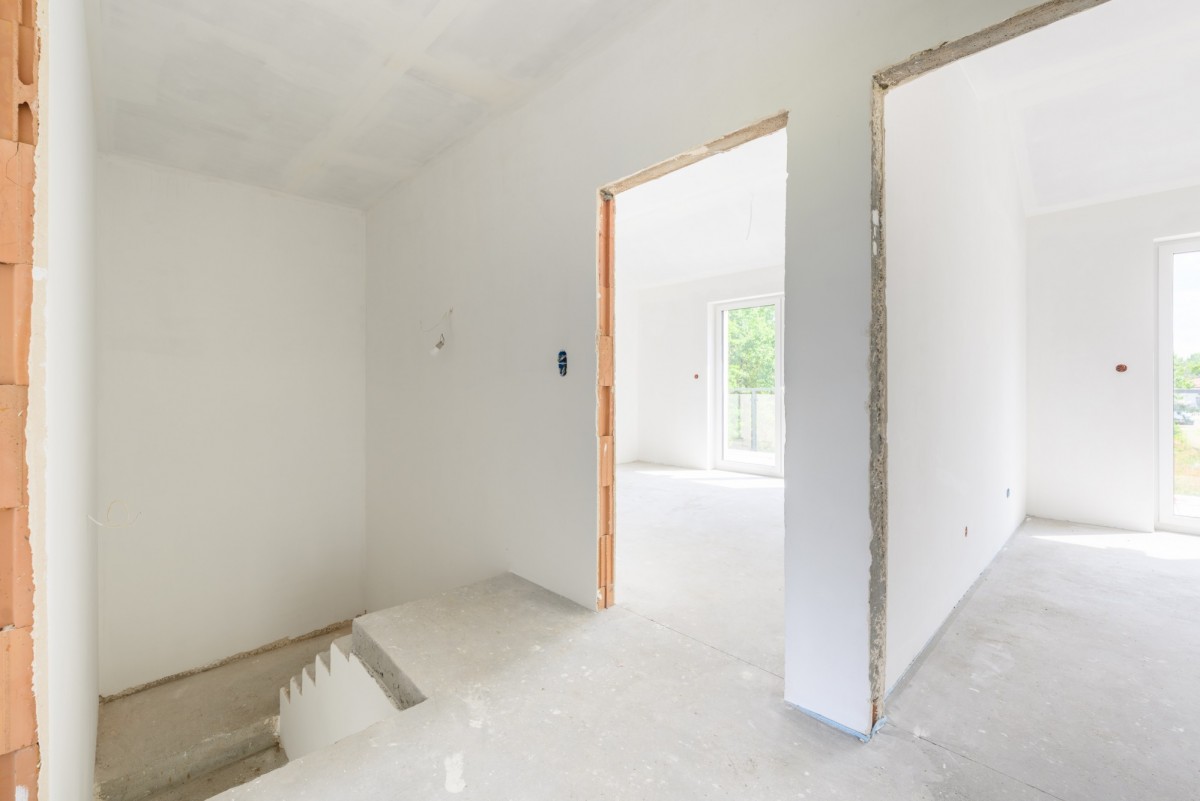 • Wnętrza: tynki gipsowe, ściany pomalowane białą farbą gruntującą Beckers