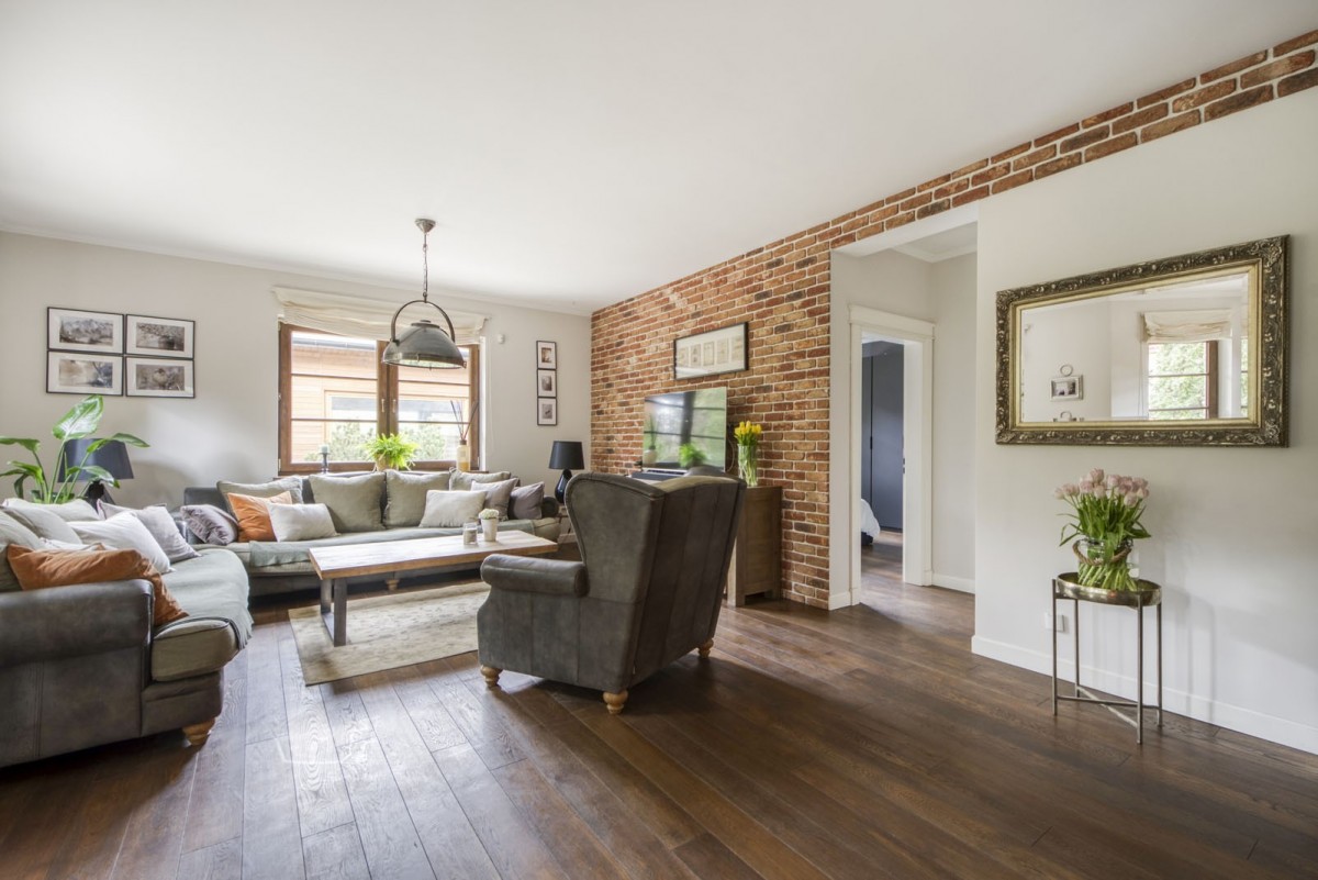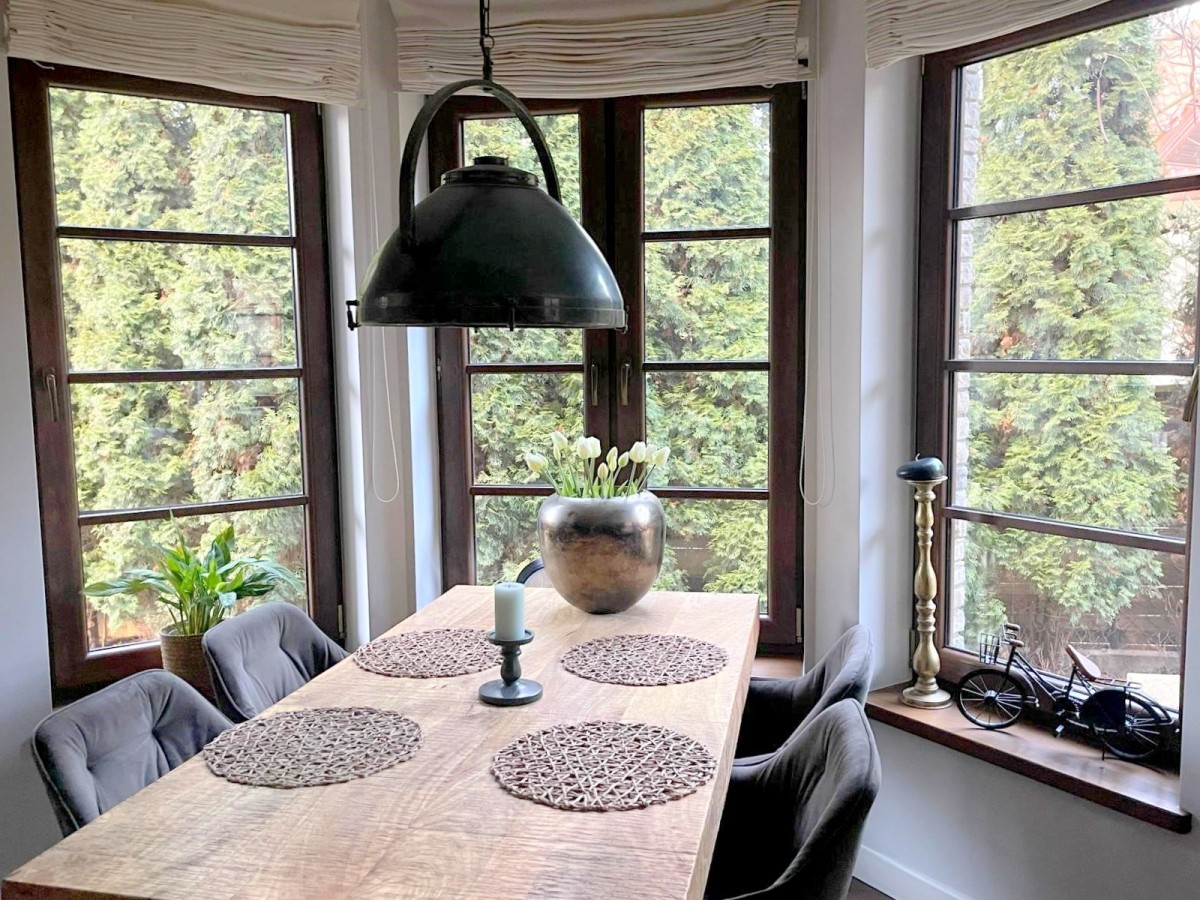 Dom jest zbudowany z wysokiej jakości materiałów, z dbałością o szczegóły wykonania.