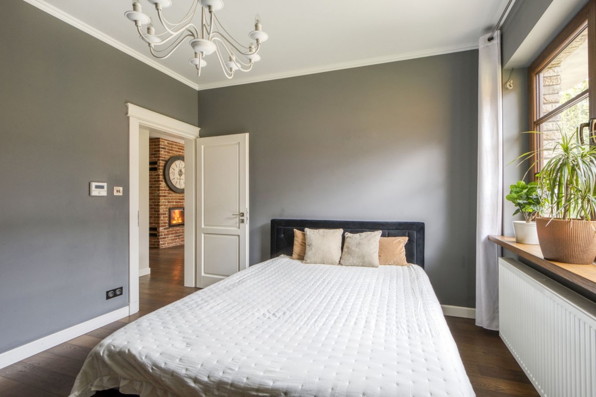 ogrzewanie – gazowe (pompa ciepła), dodatkowo częściowo rozprowadzenie z kominka