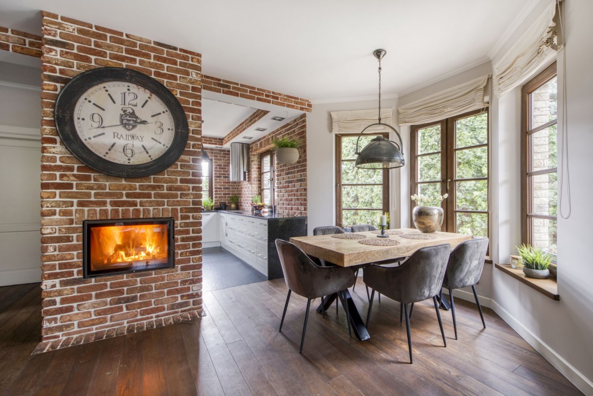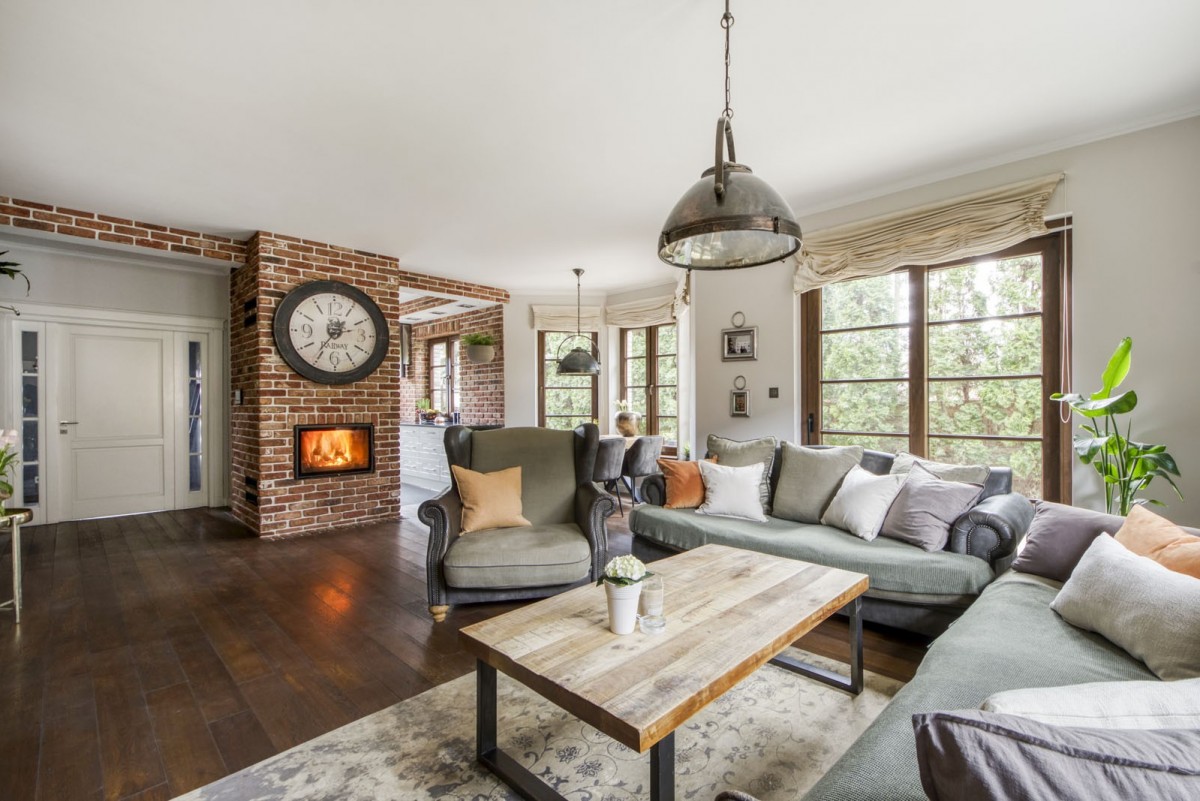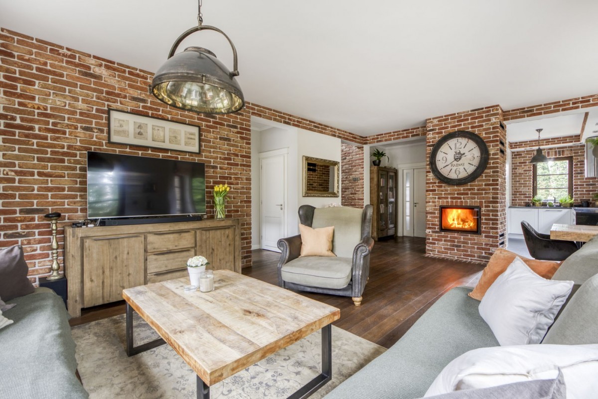 – salon z kominkiem i wyjściem na taras