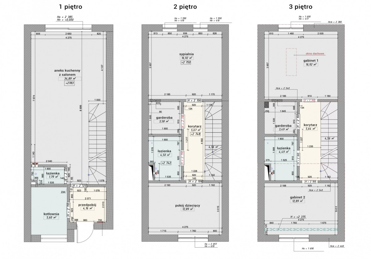 Dwie dodatkowe, wysokie sypialnie (16,99 m² oraz 12,9 m²).