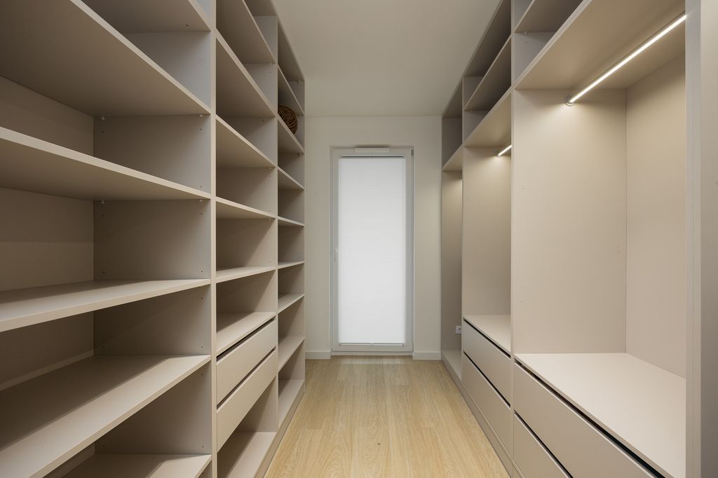 - Pokój dodatkowy / garderoba – obecnie pełni funkcję dużej garderoby, jednak z łatwością może zostać przekształcony w osobny pokój: biuro, sypialnię lub przestrzeń dla dziecka.