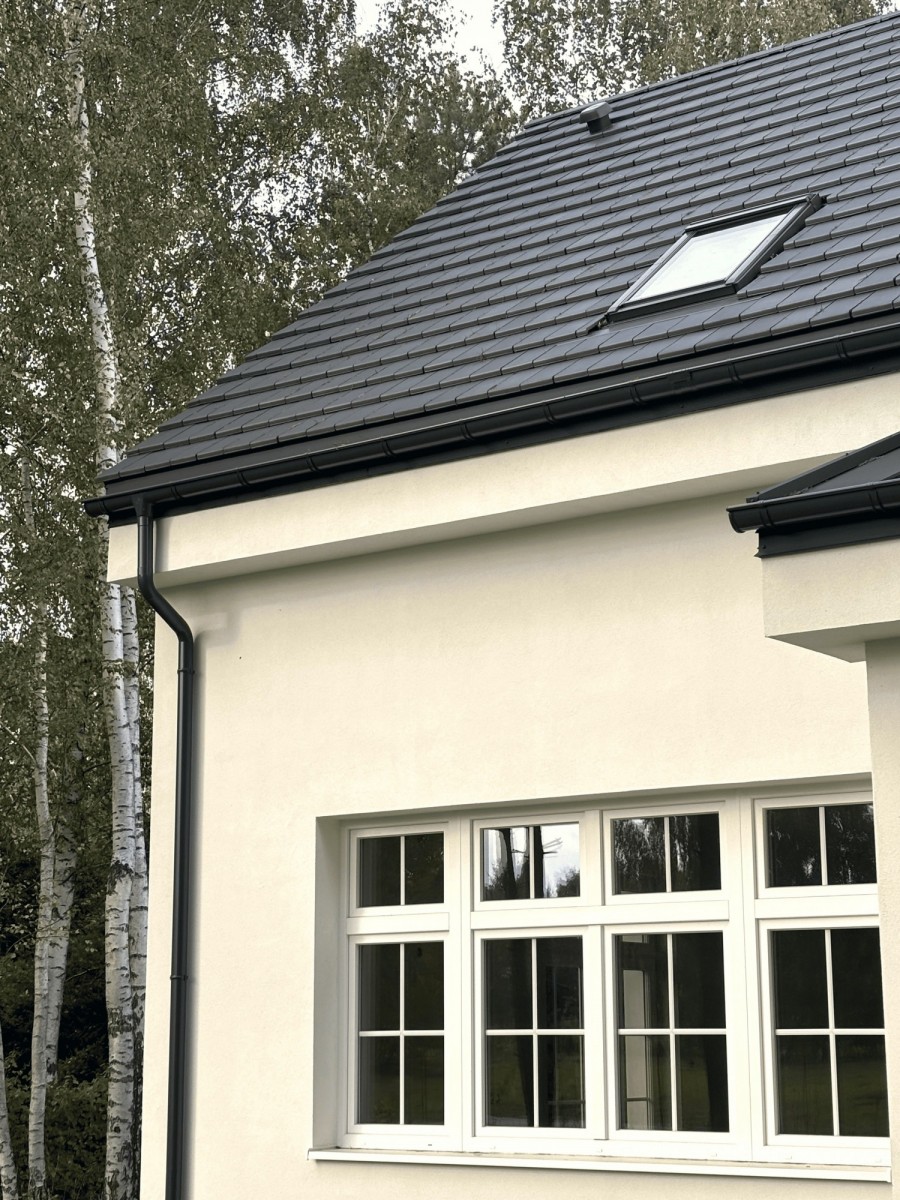Solidne docieplenie z zewnątrz grafitowym styropianem o grubości 20 cm.