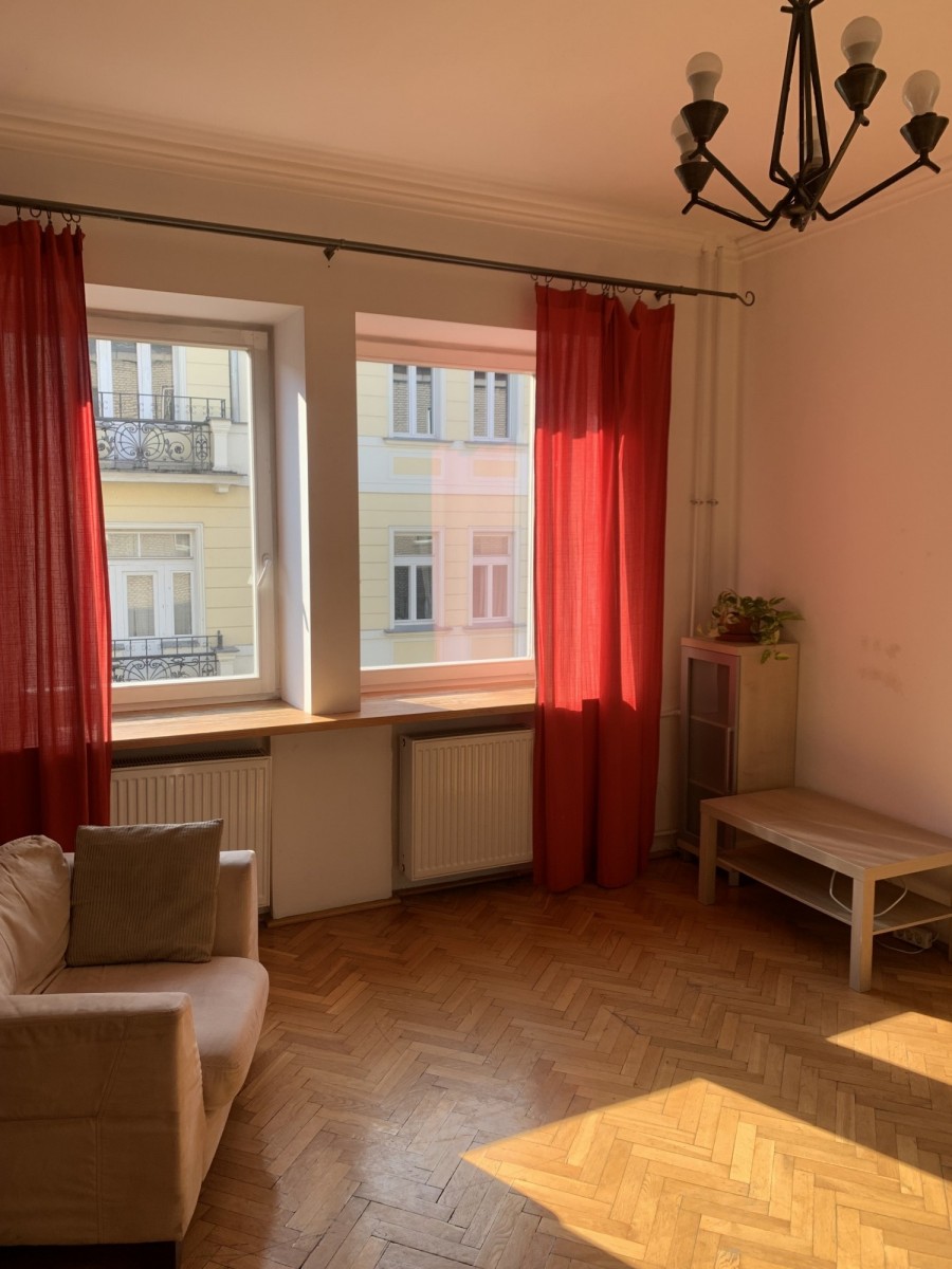 Mieszkanie 2 pokojowe, położone w kamienicy, w wyjątkowym miejscu Warszawy, bo jest to ulica Ordynacka tuż przy Nowym Świecie. Wykończone w dobrym standardzie. Jasne, słoneczne, dwustronne. W pokoju dziennym z oknami na ulicę Ordynacką . ładny parkiet, meble, znajduje się aneks kuchenny. W aneksie meble, duża lodówka, zmywarka. Sypialnia z oknami na ciche, wewnętrzne i zielone podwórko. w sypialni duże łóżko, szafa.