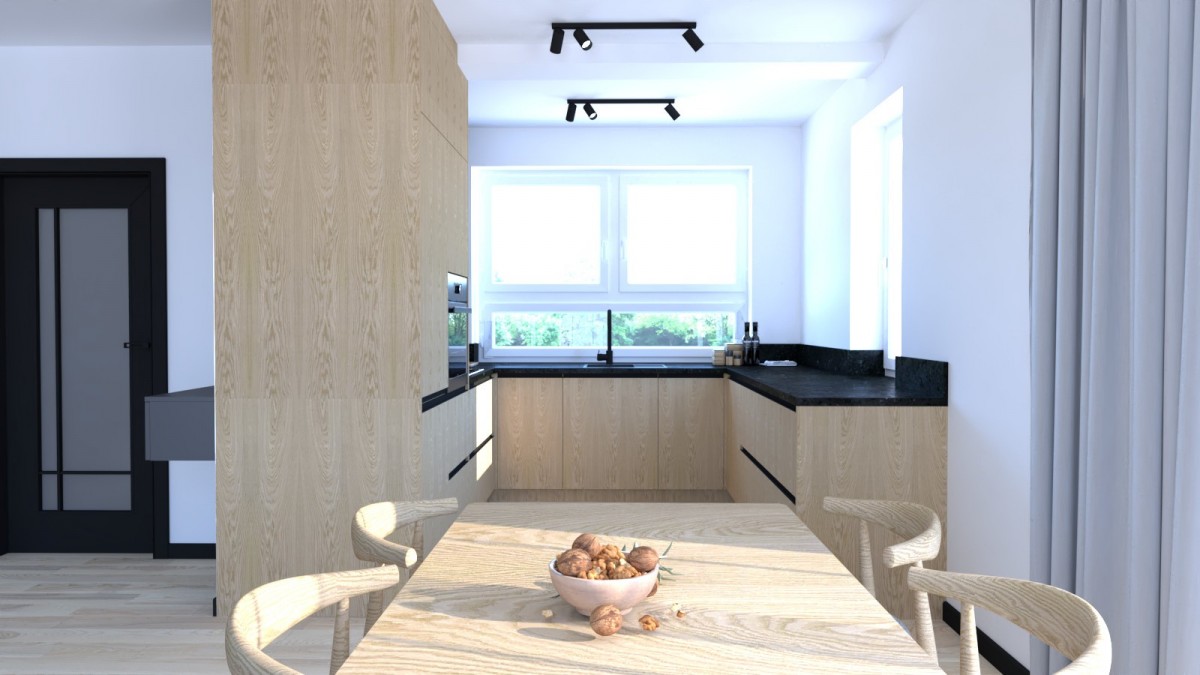 – przestronny salon z aneksem kuchennym: 32,51 m²,