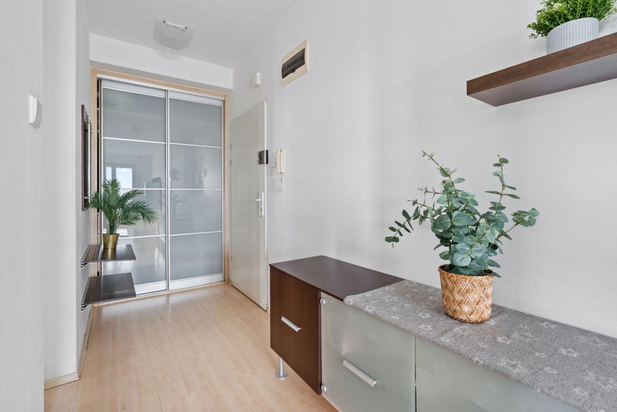 Mieszkanie położone jest na 8 piętrze w 16 piętowym budynku z roku 2003. W bloku do dyspozycji mieszkańców znajdują się dwie windy. Osiedle jest ogrodzone, monitorowane i strzeżone, co zapewnia wysoki poziom bezpieczeństwa i komfortu. Na zamkniętym patio mieści się plac zabaw dla dzieci.