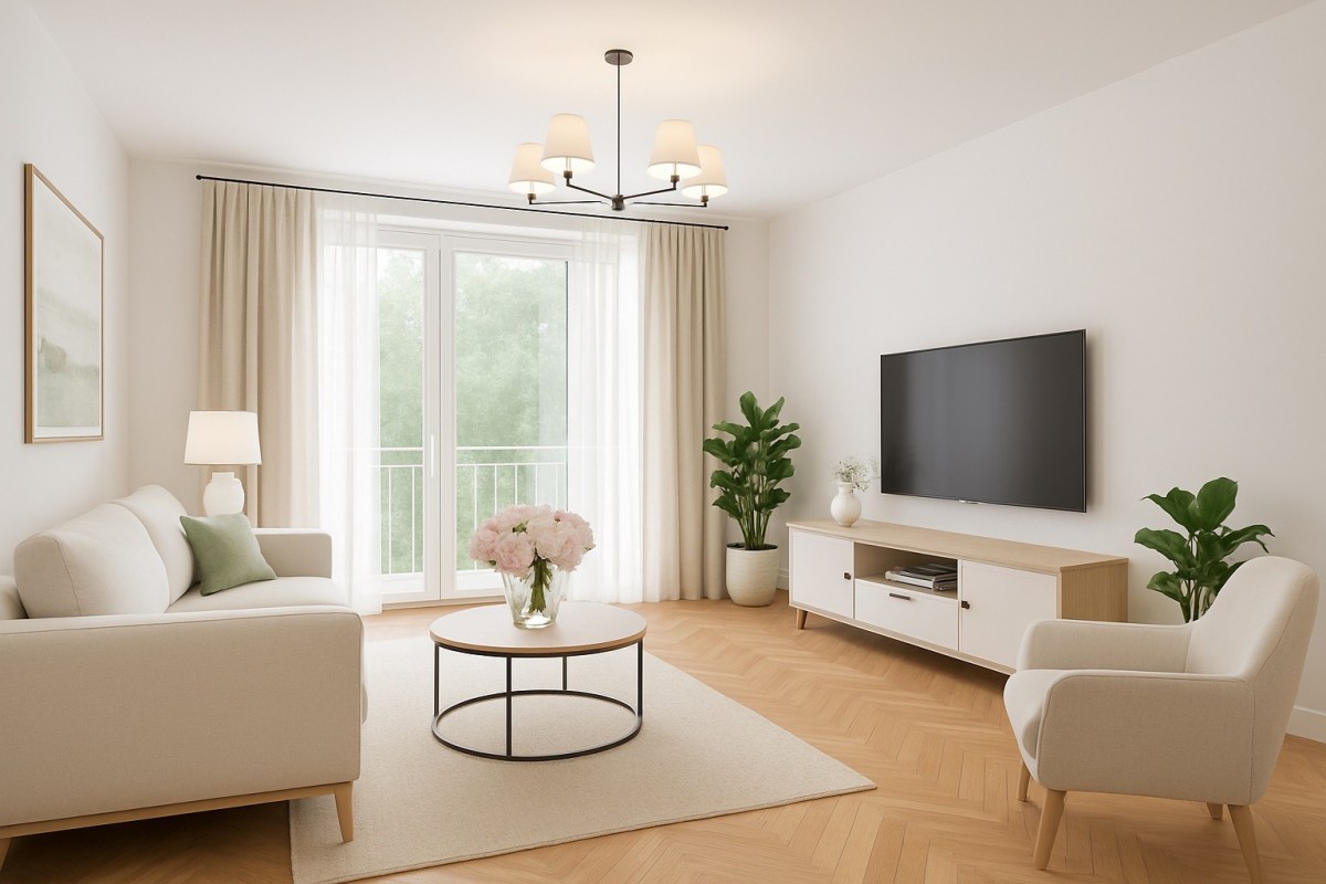 W ogłoszeniu część zdjęć przedstawia wizualizacje mieszkania.