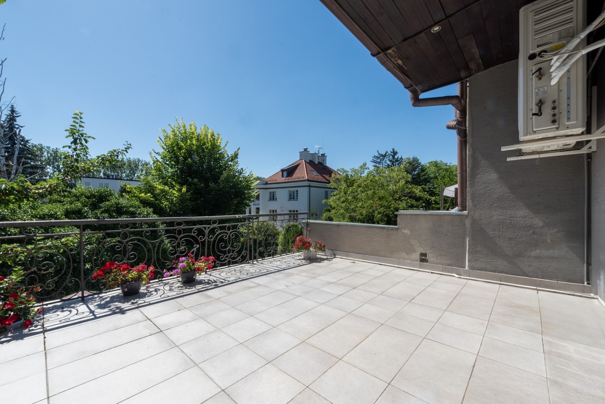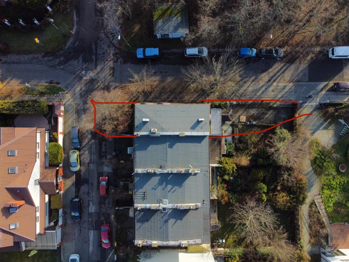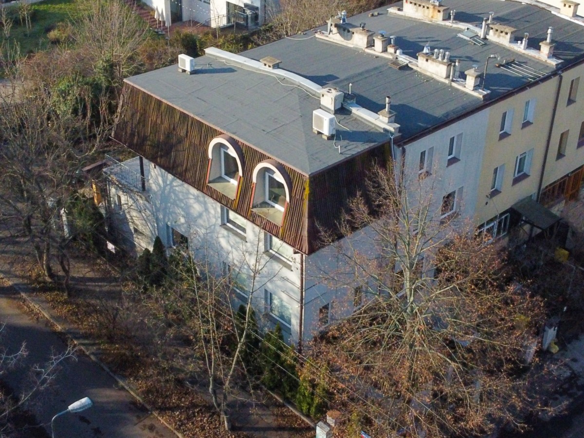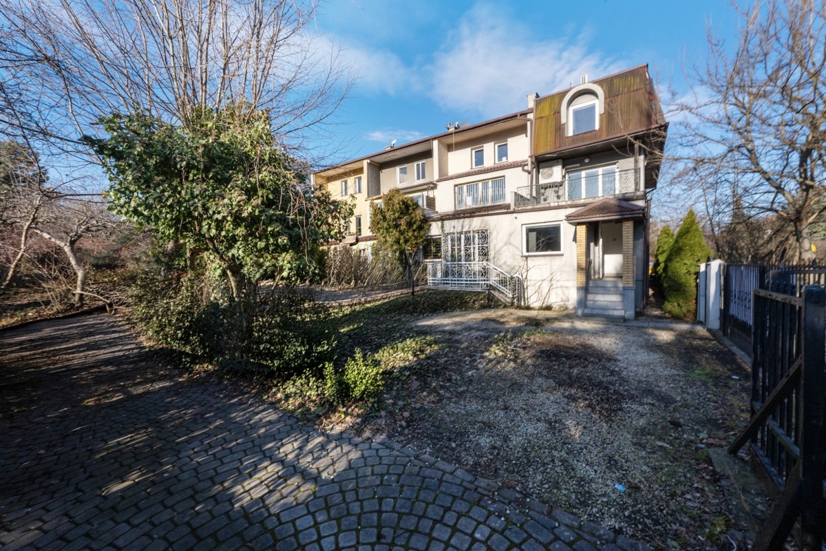A charming and very green 200m2 plot with numerous plantings, rectangular shape, located in the depths of Sadyba. The segment located on it is currently prepared for business or residential purposes. It offers full office infrastructure, monitoring cameras and air conditioning on each floor. Carpets have been laid on the floors, and wooden boards underneath. The house has huge arrangement potential, a practical layout and a spacious terrace on the first floor. Thanks to the southern, eastern and western exposure, the property lets in a lot of natural light.