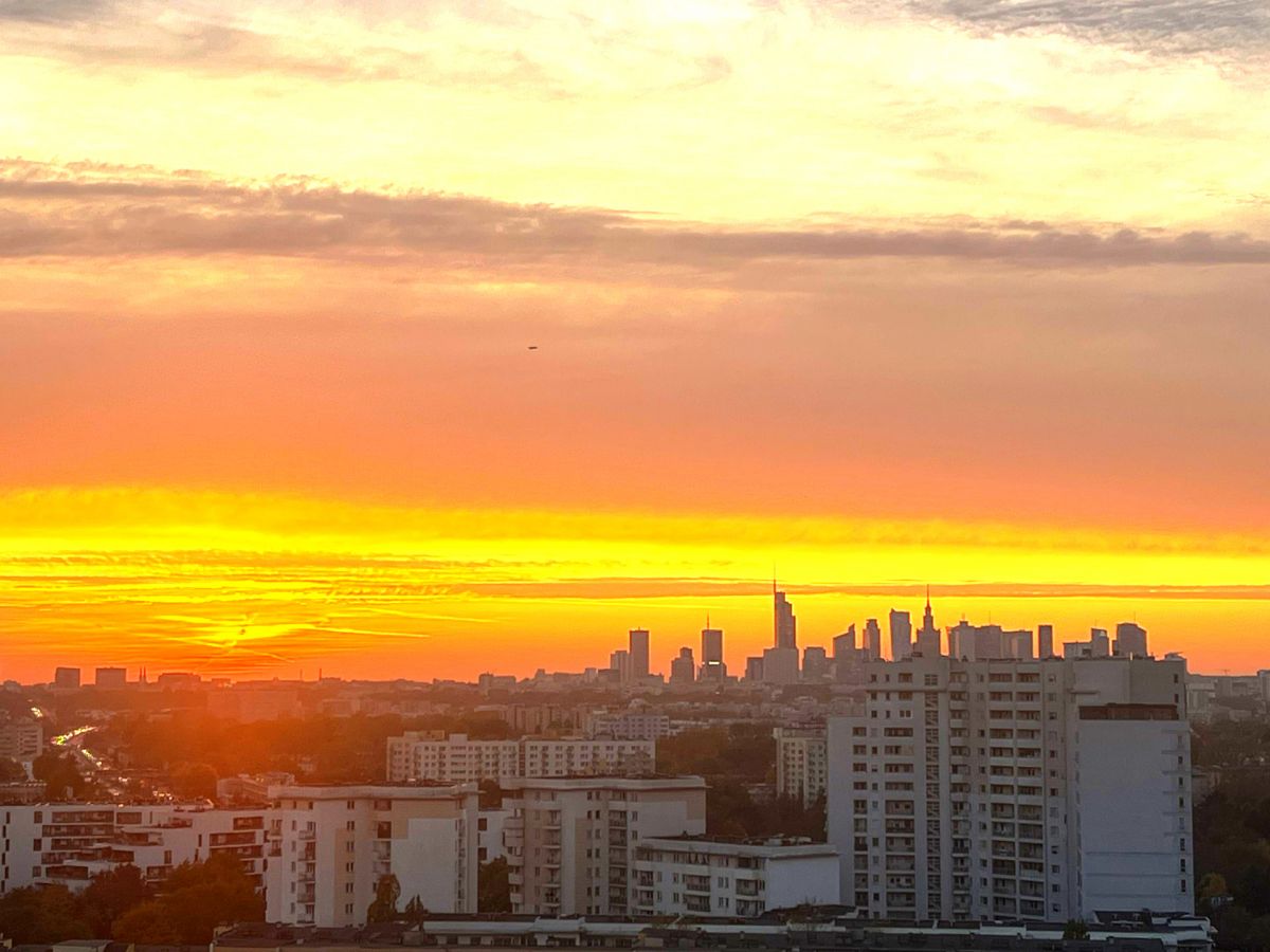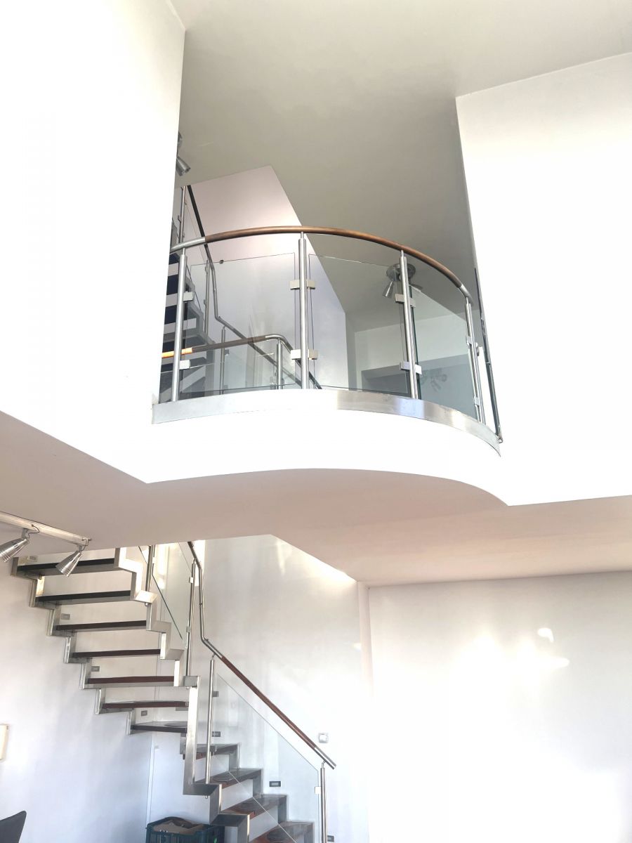 Trzy poziomowy, z trzema balkonami i dużym tarasem (56m) na trzecim poziomie (wysokość 17piętra).