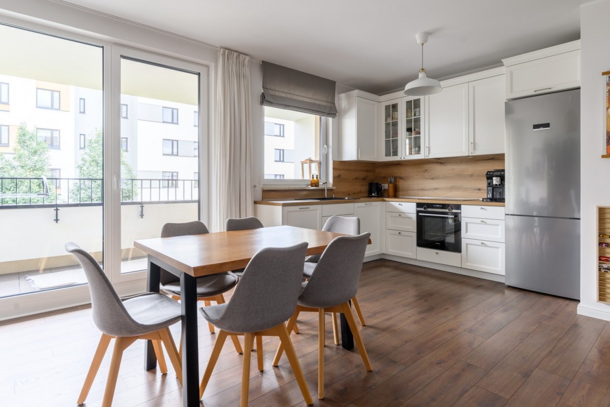 Przestronne i jasne 3-pokojowe mieszkanie z loggią, dwoma miejscami postojowymi i komórką lokatorską, położone na pierwszym piętrze nowoczesnego budynku przy ul. Pohulanka 7 w Warszawie, na lubianym i świetne zorganizowanym Osiedlu Wilno.