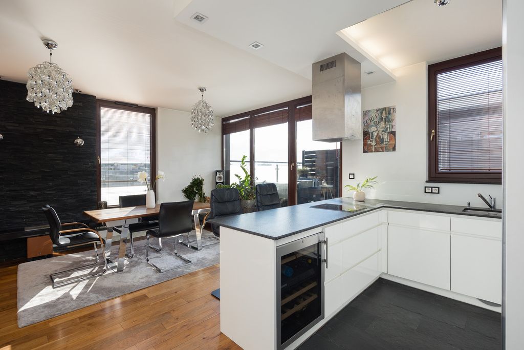 Apartament został zaprojektowany przez architekta z dbałością o każdy szczegół. Wszystkie zabudowy meblowe wykonano na wymiar, z materiałów wysokiej klasy.