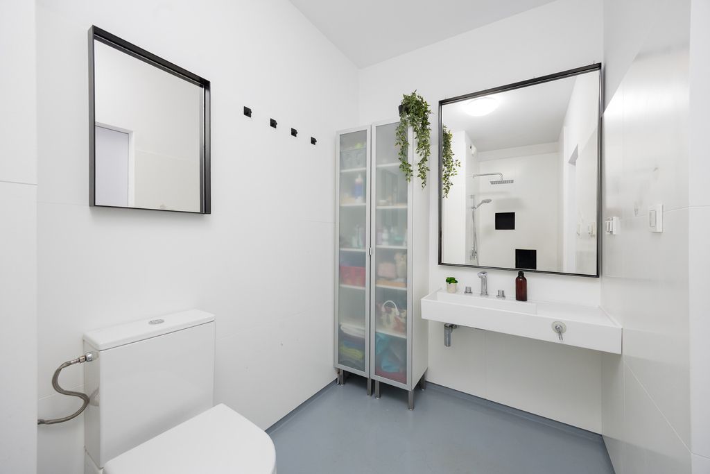 W mieszkaniu znajduje się drewniana podłoga Barlinek, a aneks kuchenny wyposażony jest m.in. w lodówkę, zmywarkę, piekarnik z funkcją pary, płytę indukcyjną oraz okap. W budynku dostępna jest wózkownia.