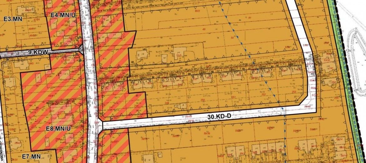 Teren objęty MPZP planem miejscowym o symbolu F12.MN – zabudowa mieszkaniowa jednorodzinna
