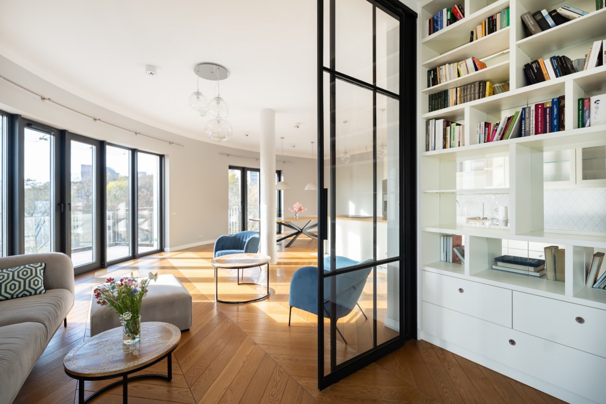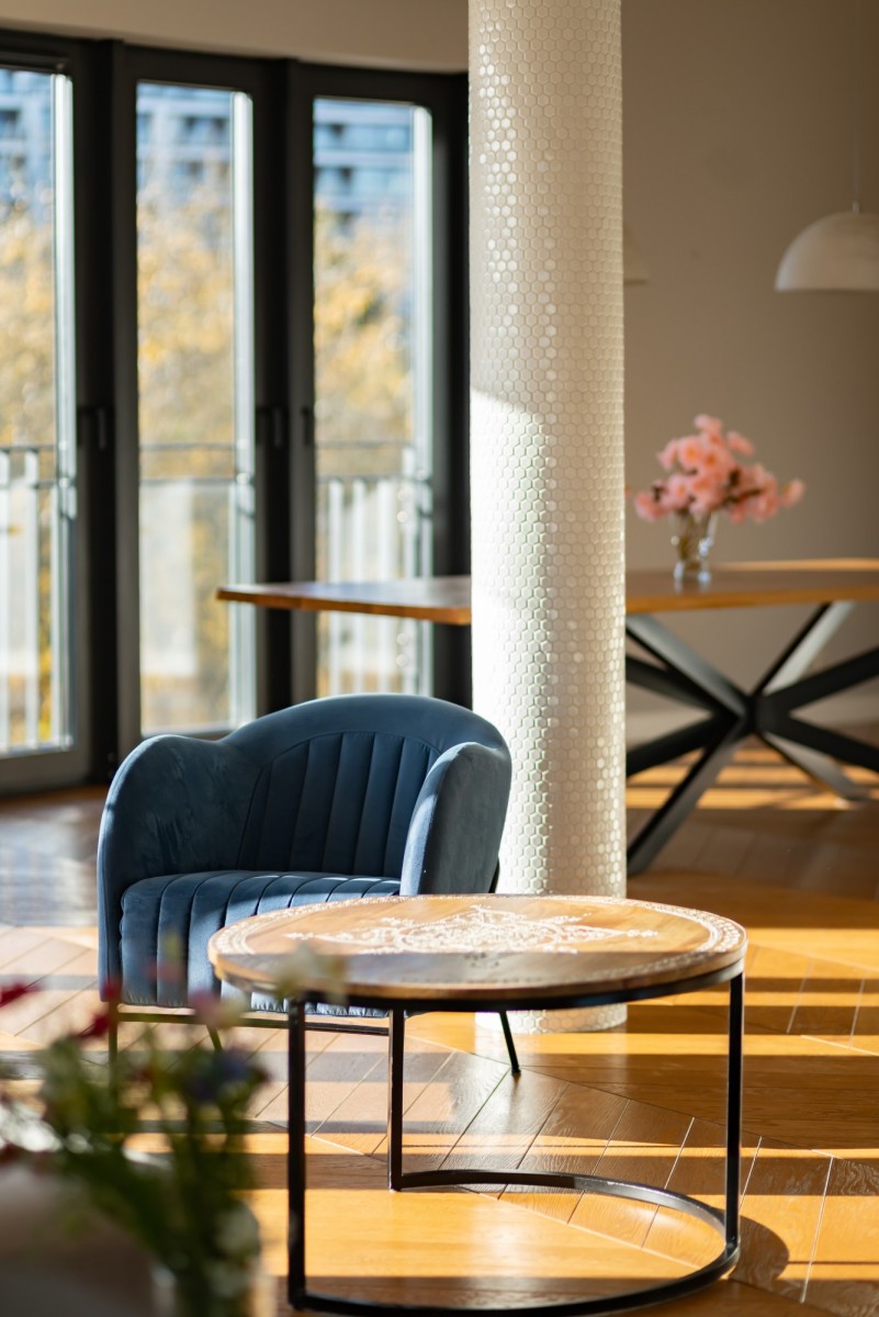 Penthouse przy Huculskiej to przykład idealnej równowagi między miejskim życiem a spokojem, jaki daje otoczenie mokotowskich parków. To przestrzeń, w której architektura spotyka się z naturą, z każdego okna widać zieleń, a jednocześnie wszędzie jest blisko.