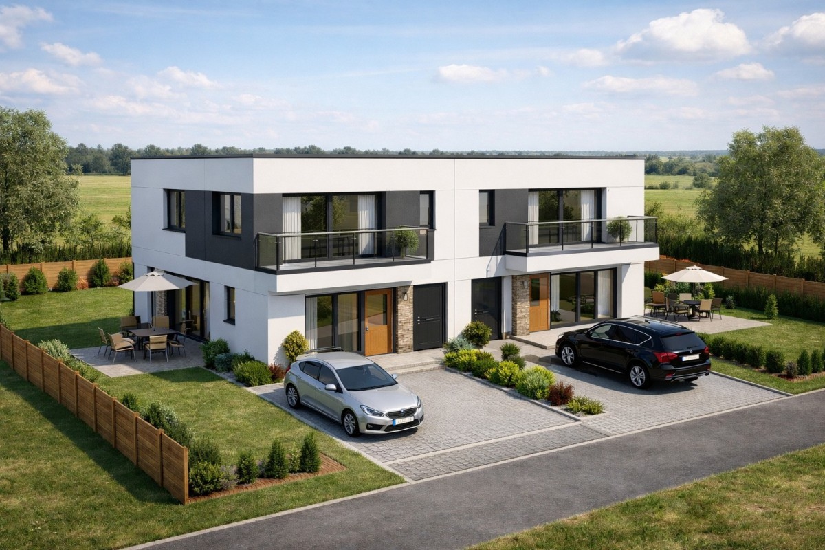 Prezentowana wizualizacja ma charakter wyłącznie poglądowy, pomocniczy i ilustracyjny. Nie stanowi oferty w zakresie projektu budowlanego, zapewnienia możliwości zabudowy ani gwarancji realizacji inwestycji o przedstawionych parametrach. Wizualizacja nie przedstawia istniejącego budynku i została zamieszczona jedynie w celu zobrazowania przykładowego potencjału zagospodarowania nieruchomości. Ostateczna możliwość zabudowy działki oraz parametry ewentualnej inwestycji zależą od obowiązujących przepisów prawa, ustaleń MPZP lub warunków zabudowy, warunków technicznych oraz uzyskania stosownych zgód, opinii i decyzji.