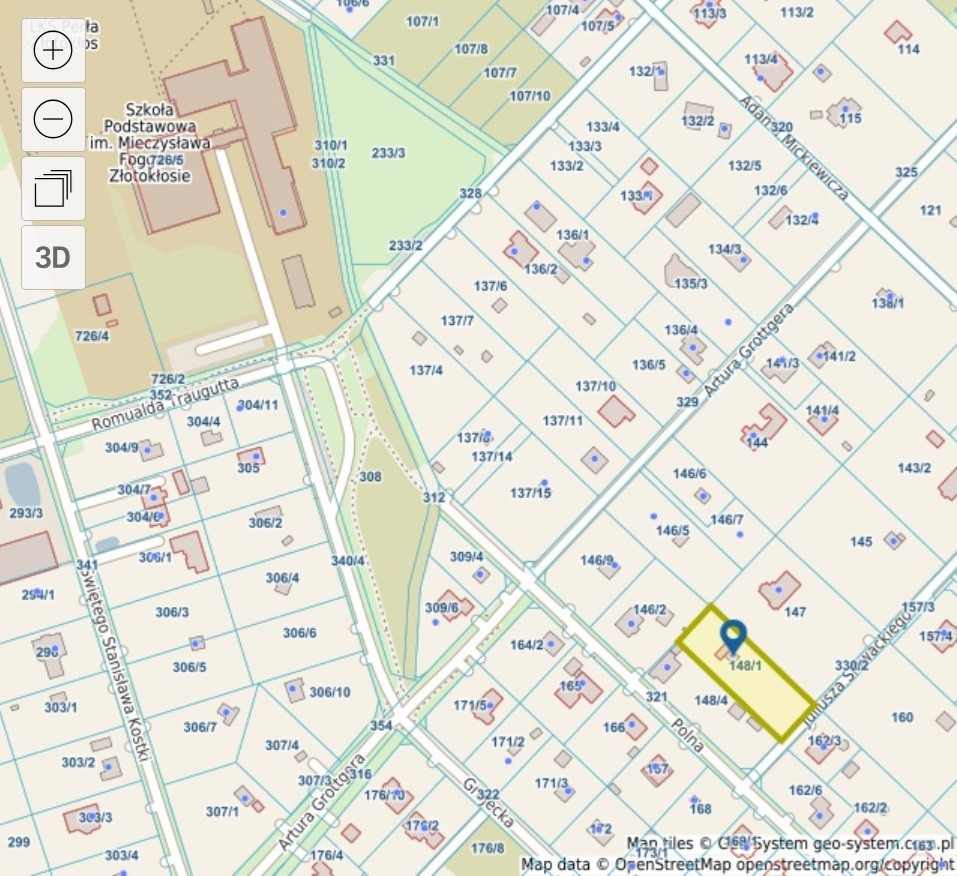 Złotokłos, ul. Słowackiego 12 | Działka 2000 m² | Woda miejska | Kanalizacja | Gaz – wszystkie media podłączone.