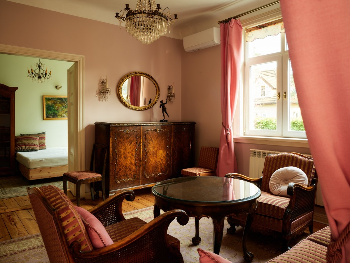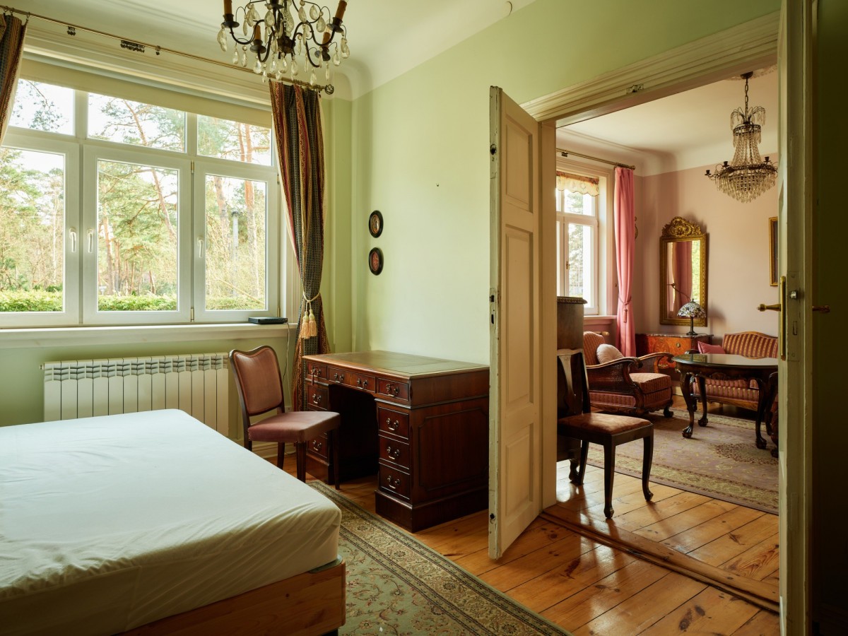 Józefów is a green, calm place to live, valued for its relaxed atmosphere and residential character. This apartment is set in a pre-war villa, which gives the address a distinctive, boutique feel compared to standard apartment blocks. The setting supports a quieter lifestyle while still keeping you connected to everyday needs. If you appreciate character architecture and a more intimate building environment, this location fits that preference well.