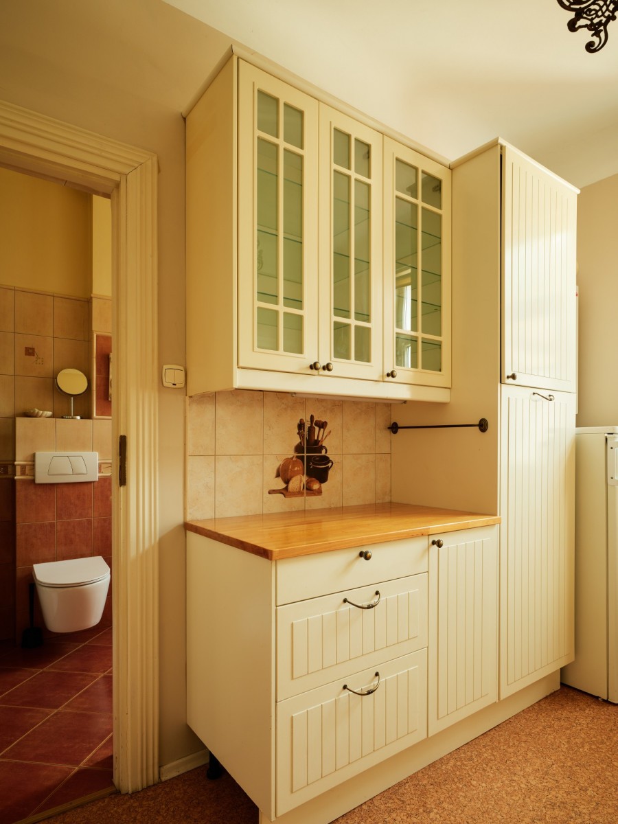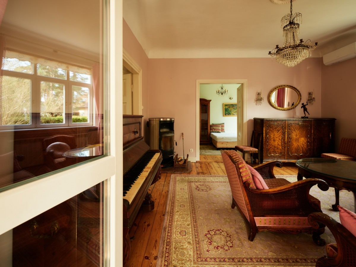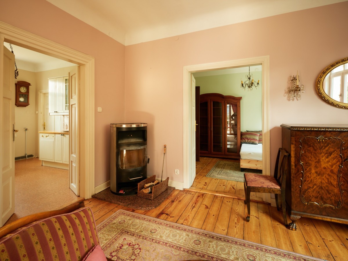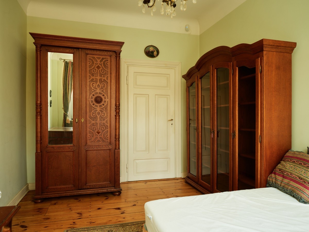 This 65 m² apartment is arranged as a comfortable two-room home with a living room and a separate bedroom. The kitchen is separate, which keeps cooking and daily life nicely organized and gives you more flexibility in how you use the living space. A bathroom completes the layout in a straightforward, functional way. The apartment is located on the ground floor, making daily access easy. With a 3 m ceiling height, the interiors feel spacious and pleasantly open. Thanks to the three-sided exposure (south, west, and north), the apartment is very bright while remaining very quiet. The condition is “move-in ready,” so you can settle in without planning renovation work. A veranda adds a charming extension of the living area and fits the villa’s character beautifully. The living room also features a decorative fireplace intended for recreational use. The Tenant is entitled to one parking space within the property grounds.