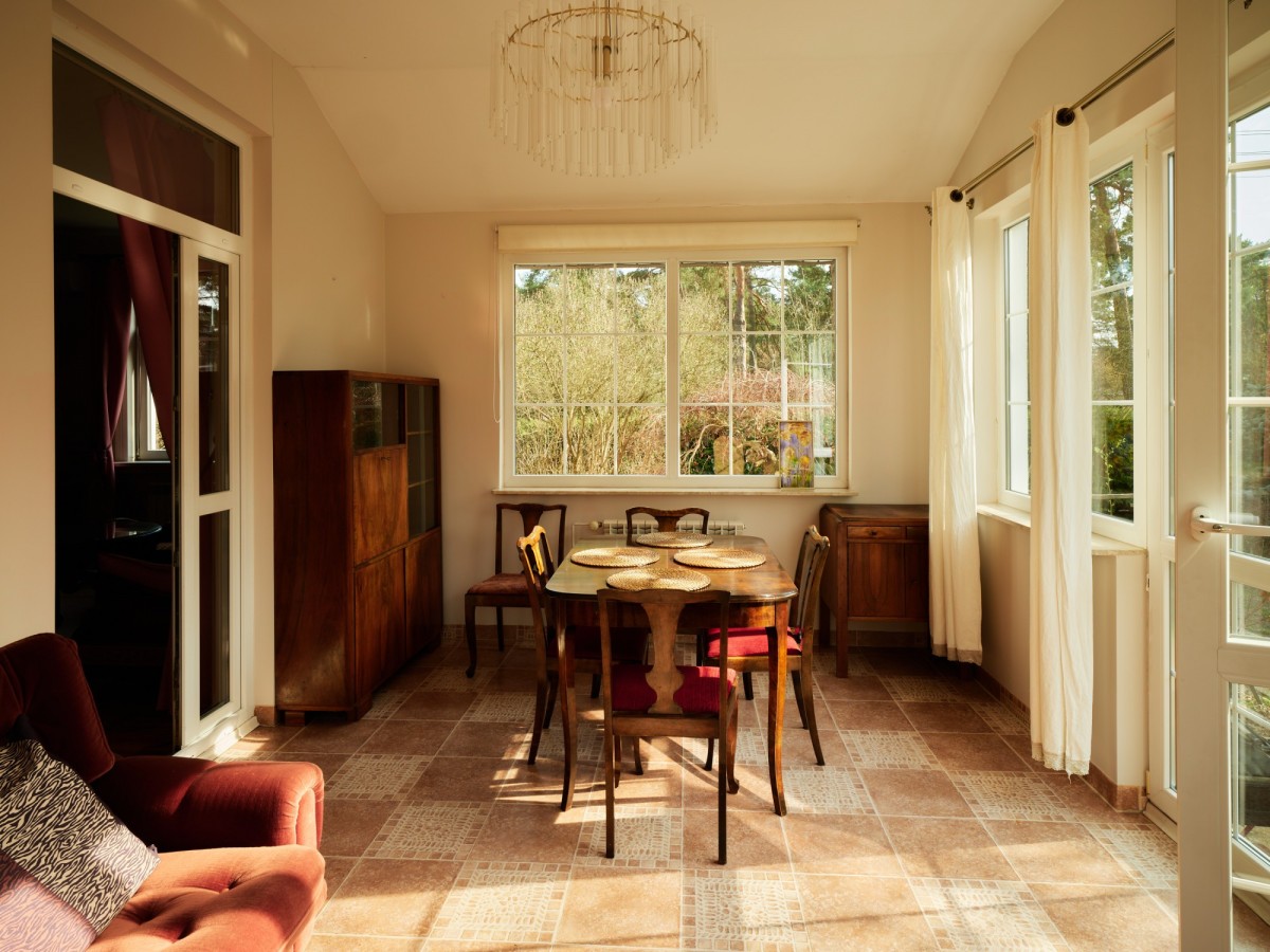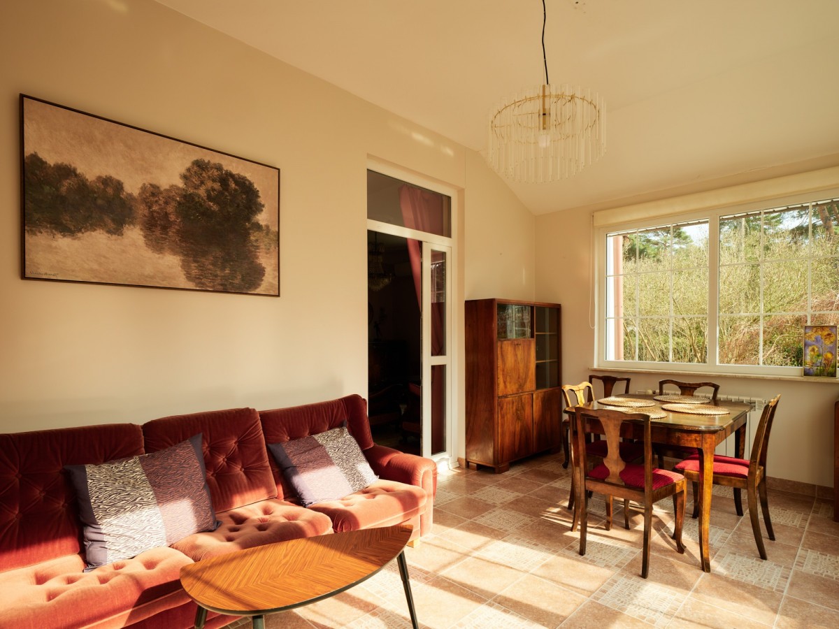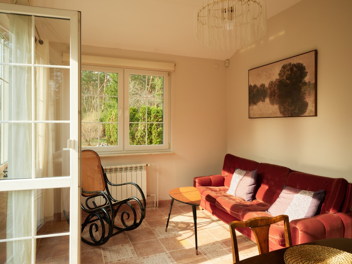 A bright, quiet 65 m², 3-room apartment for rent in Józefów, set in a pre-war świdermajer villa from 1935. Located on the ground floor, it offers a rare three-sided exposure (south, west, north) and a welcoming veranda.
