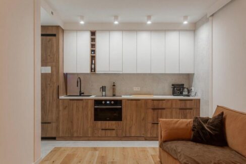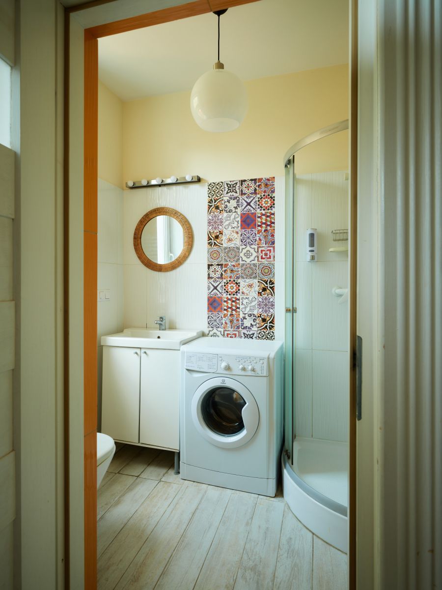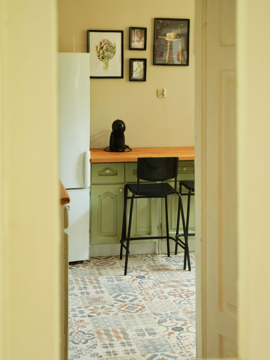 The apartment offers 49.5 m² and includes a living room, a bedroom, a separate kitchen, and a bathroom. Being on the ground floor makes everyday living easier and provides convenient access to the garden area in front of the apartment. The 3 m ceiling height enhances the feeling of spaciousness and highlights the character of the interiors. The rooms have north-west and east-south exposure, allowing you to enjoy natural light at different times of day. The apartment is move-in ready, and the stylish furnishings remain, so you can settle in without having to furnish everything from scratch. The kitchen is separate and equipped with an induction hob, a dishwasher, and a fridge. Overall, it’s an excellent option for anyone who values a functional layout, the charm of a wooden villa, and greenery right outside the door.