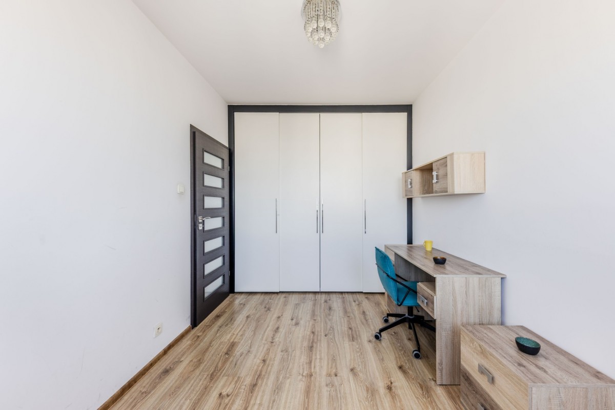 Nieruchomość jest bardzo zadbana, co widać na każdym kroku. Dodatkowo na terenie osiedla znajduje się dużo, jak na część miasta, zieleni i plac zabaw z ławeczkami. Mieszkanie jest jednym z 3 mieszkań znajdujących się na ostatnim, 7 piętrze bloku.