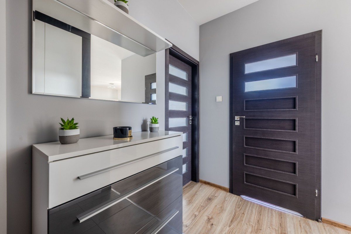 Hol kilku metrowy wraz z zamkniętą szafą ubraniową daje komfort wejścia do mieszkania.