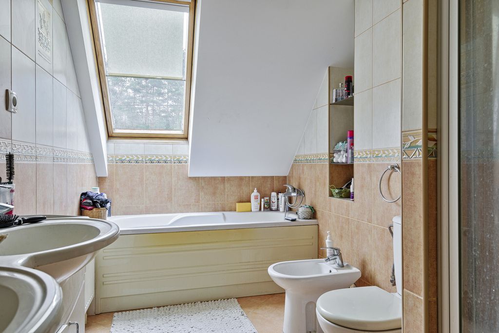 Na piętrze: pokój sypialny(8,51m2-parkiet dębowy),łazienka(7,28m2)hollkomunikacja(28,91m2-parkiet dębowy),pokój sypialny(11,54m2-parkiet dębowy),pokój sypialny(12,53m2-parkiet dębowy)łazienka(8,82m2),garderoba(7,32m2-parkiet dębowy),balkon(6,50m2).