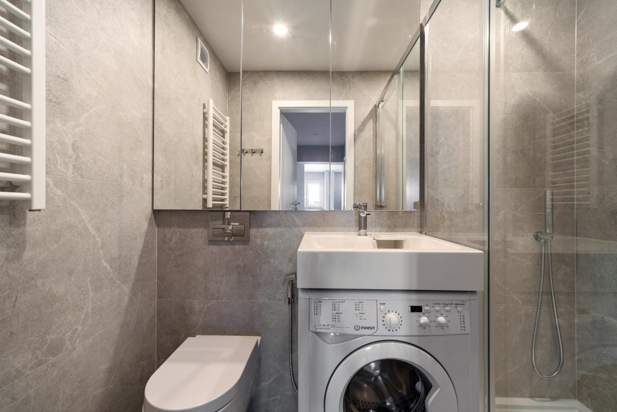 łazienki z prysznicem, WC i pralką,