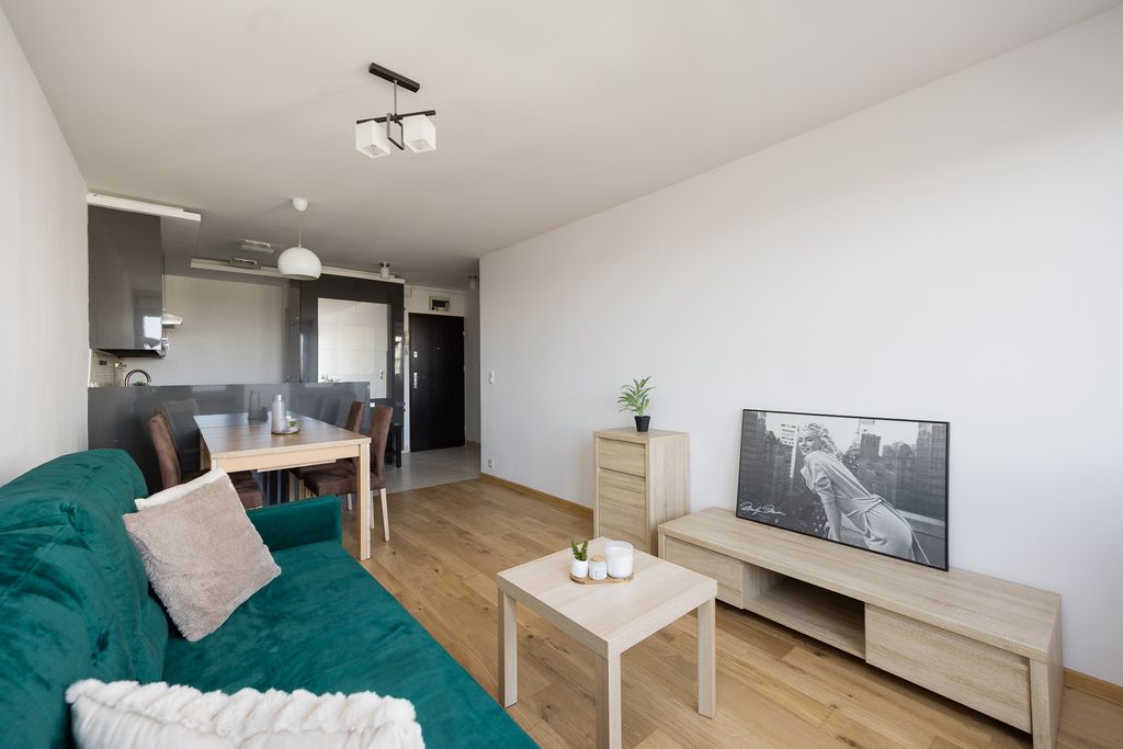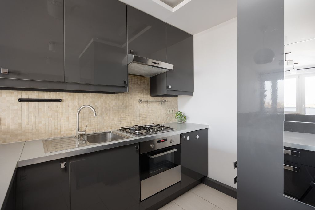 Mieszkanie jest w pełni wyremontowane i gotowe do zamieszkania lub wynajmu. W lokalu znajduje się aneks kuchenny wyposażony w zabudowę meblową oraz sprzęt AGD, w tym lodówkę, zamrażarkę, piekarnik, płytę gazową, okap, zmywarkę oraz pralkę.