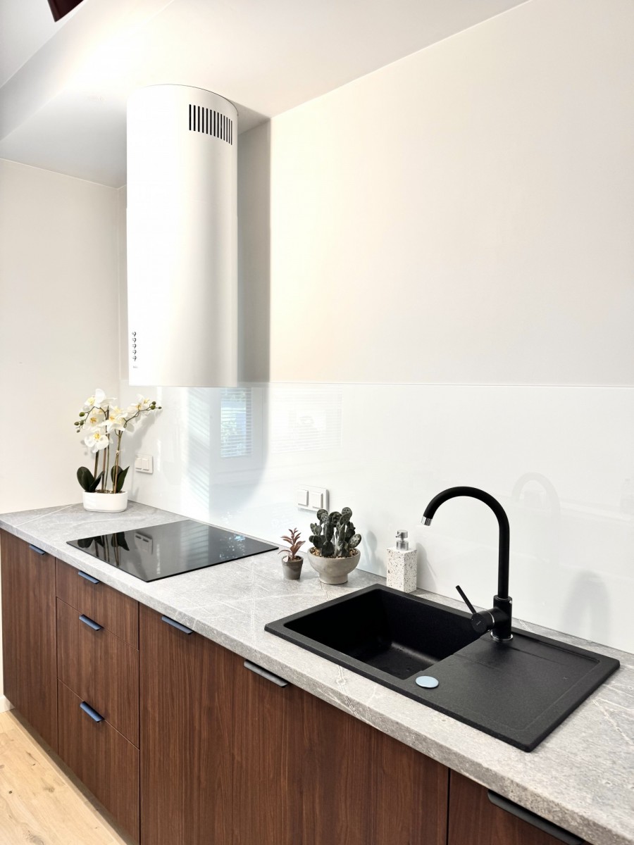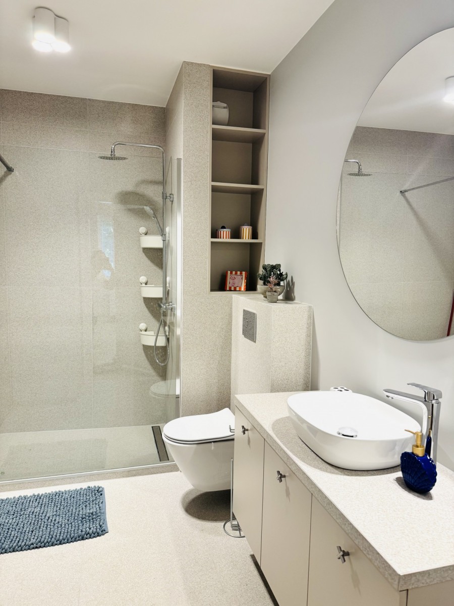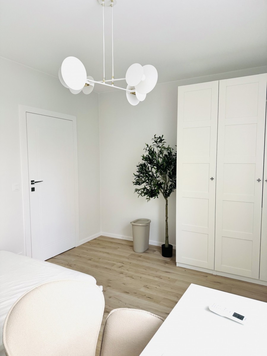 Mieszkanie jest całkowicie nowe. Wspólna przestrzeń obejmuje w pełni wyposażoną kuchnię z mikrofalówką, a także łazienkę z pralko-szauszarką aby zapewnić maksymalną wygodę. Mieszkanie znajduje się za parterze i jeden z pokojów będzie miał dostęp do dużego ogródka.