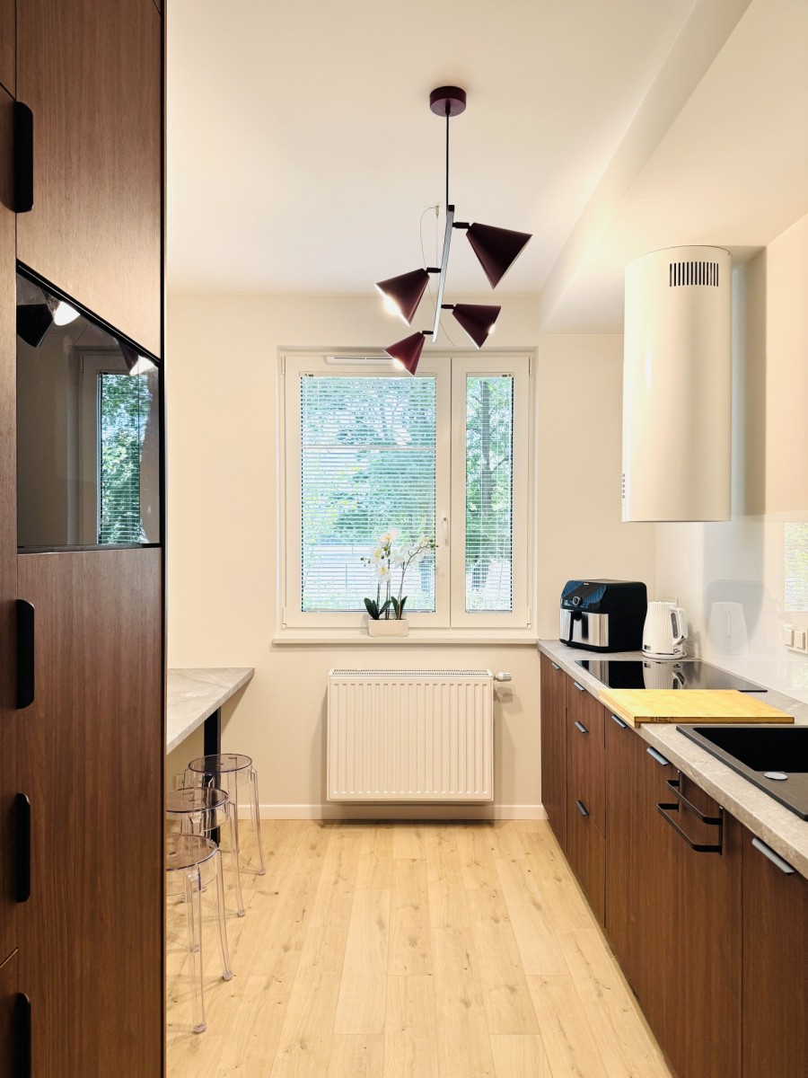 Dojazd do centrum miasta i Dworca Centralnego zajmuje około 20 minut komunikacją miejską (tramwajem lub autobusem), co sprawia, że mieszkanie jest idealnie położone pod względem komunikacyjnym.