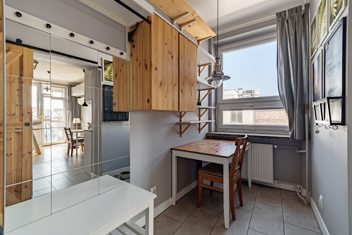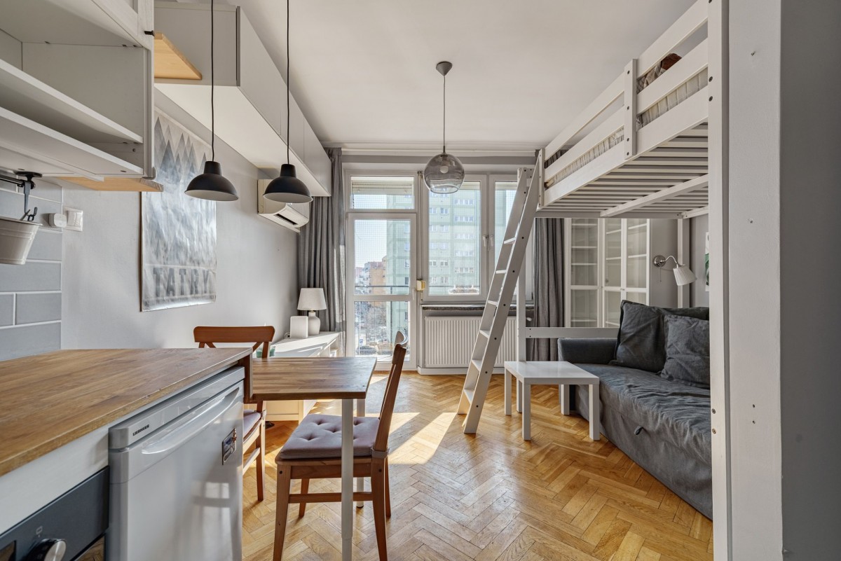 Doskonała propozycja pod wynajem! Mieszkanie było sukcesywnie remontowane, wymienione zostały wszystkie instalacje, zachowana drewniana klepka na podłodze. W pełni umeblowane, wyposażone w sprzęty RTV AGD, wszystkie meble widoczne na zdjęciach mogą tam zostać. Okna skierowane są na południe i wschód. Dużo miejsca do przechowywania i sprytnie zaaranżowana przestrzeń sypialniana w formie antresoli.