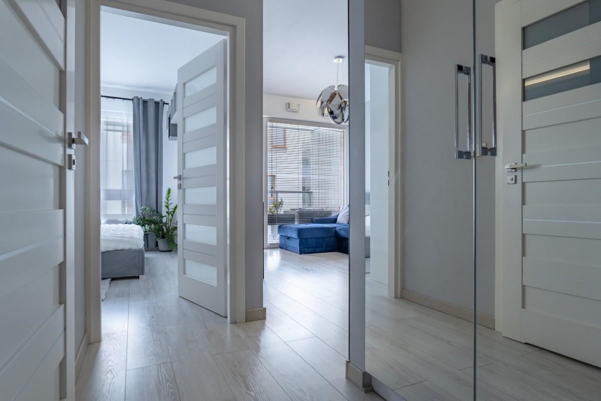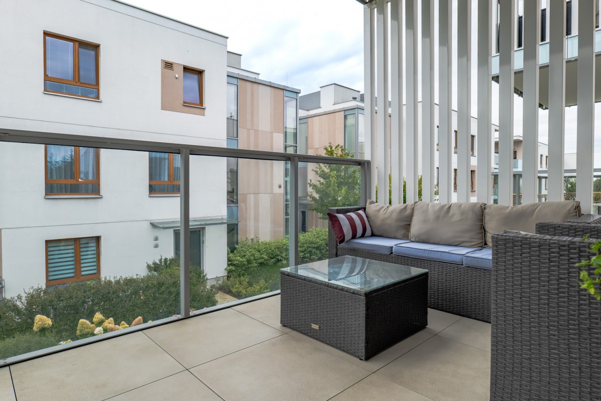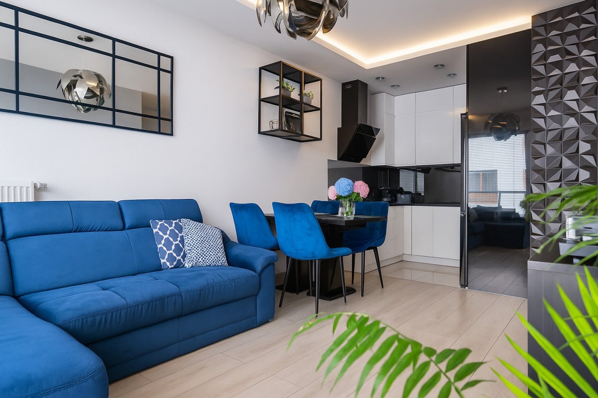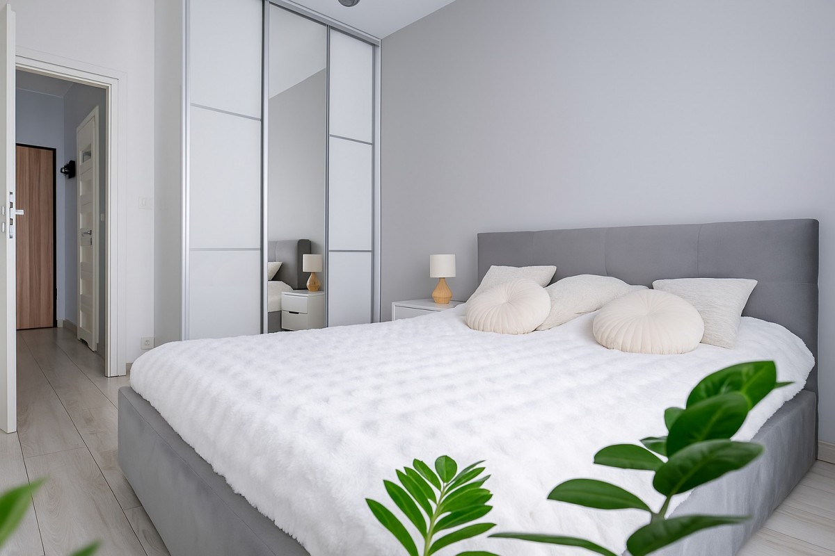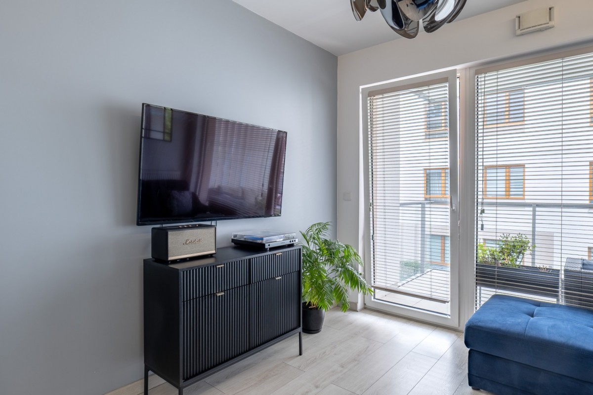 Mieszkanie usytuowane jest na 1. piętrze w nowoczesnym budynku z 2020 roku (Dom Development). Idealne dla pary, singla lub jako inwestycja pod wynajem.