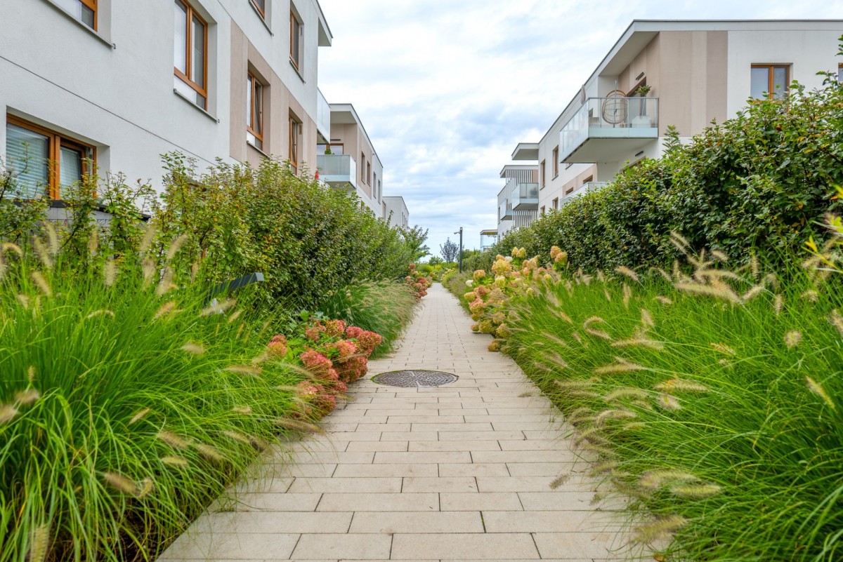 Zamknięte i monitorowane, z pięknie zagospodarowaną zielenią, placem zabaw i licznymi miejscami postojowymi. W sąsiedztwie znajdują się sklepy, restauracje, szkoły oraz tereny rekreacyjne.